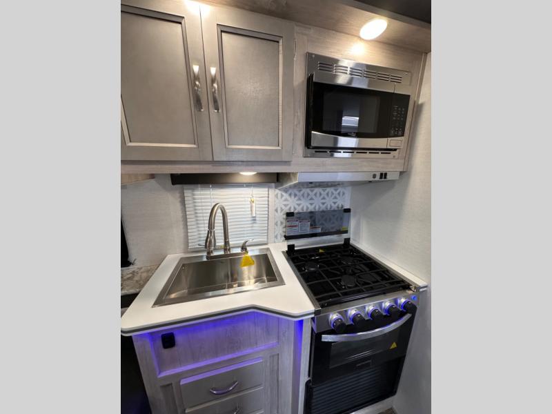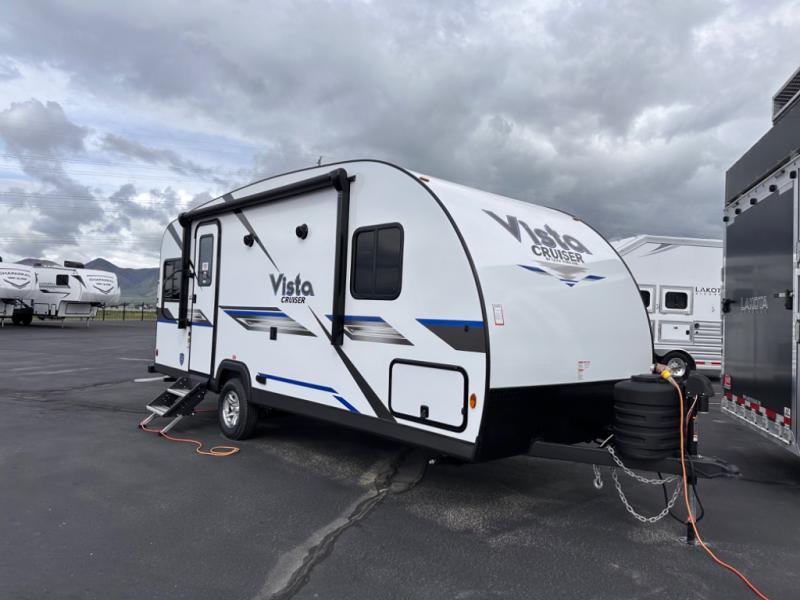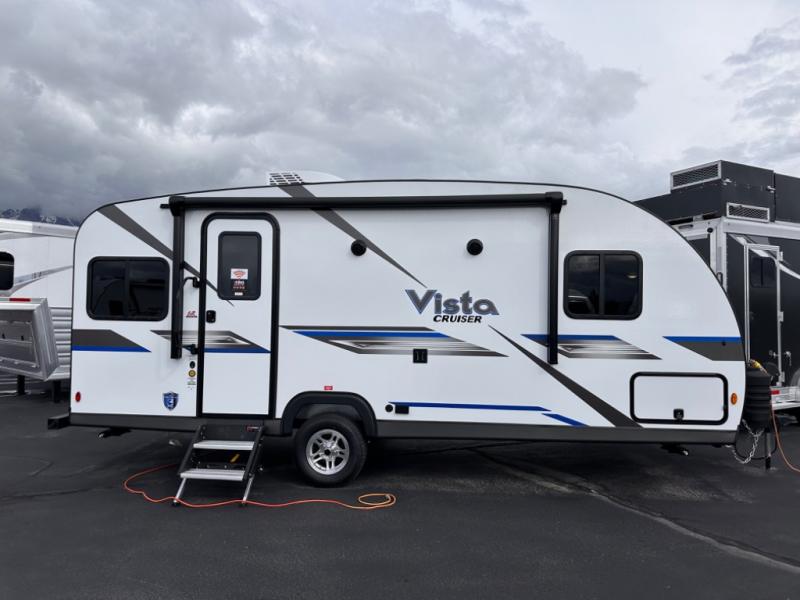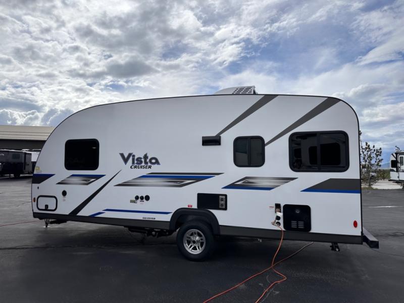 With any Vista Cruiser by Gulf Stream, you will enjoy premium quality in a compact and easy to tow travel trailer. The one-piece fiberglass roof, welded aluminum frame, and vacuum-bonded sidewalls with a composite barrier layer will create a strong and durable foundation to your RV. There are also LED running lights, along with an outside spray port, an electric awning, and a power tongue jack for easy set up. A home theater stereo with Bluetooth and speakers will allow you to listen to your favorite tunes, and there are interior and exterior TV mounting brackets if you decide to bring along a television. More interior features include "Opulence River Rock" wall vinyl, designer window treatments and night shades, tile backsplash at the range, and a premium foam mattress for your comfort.