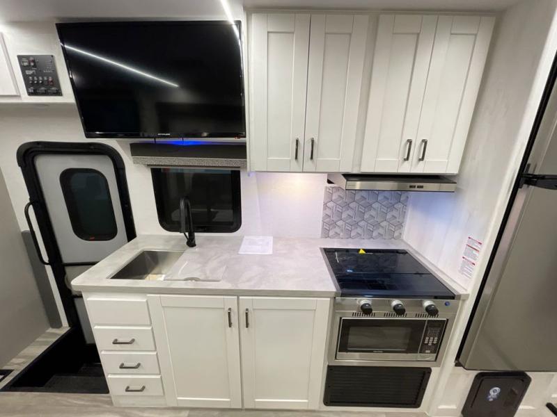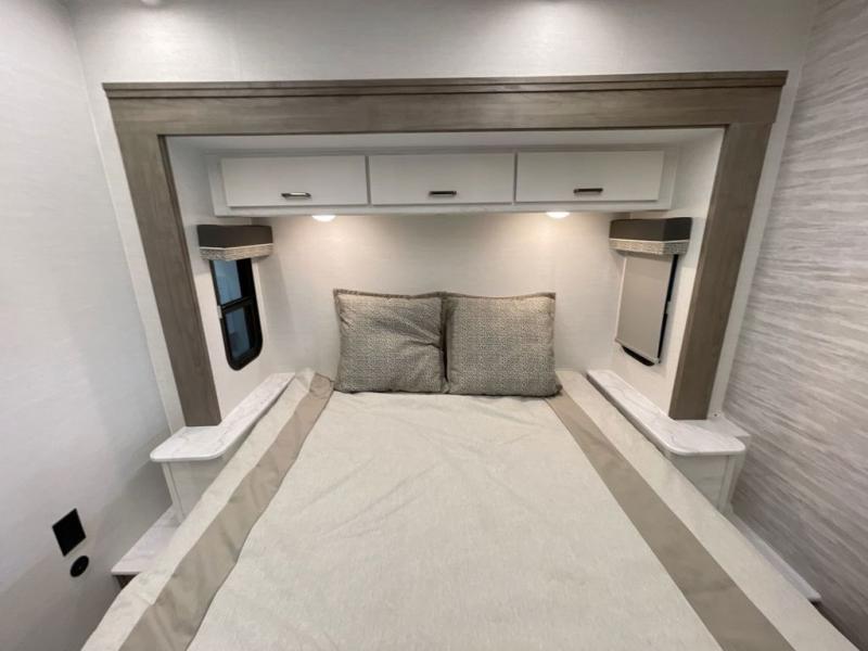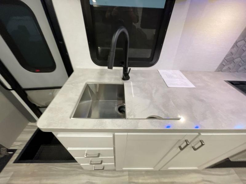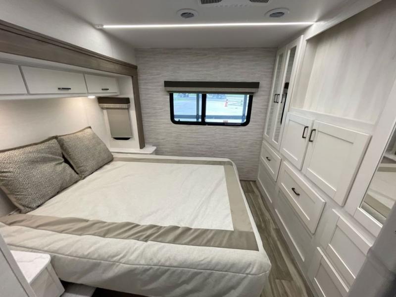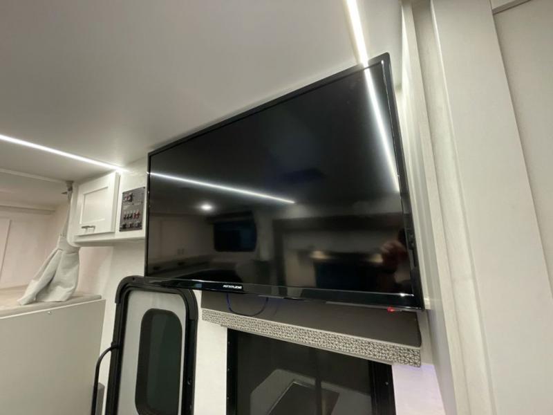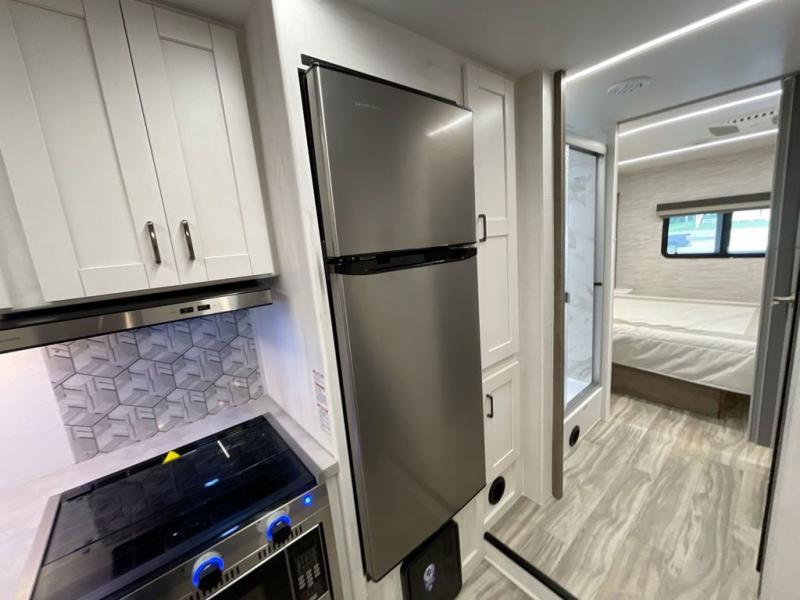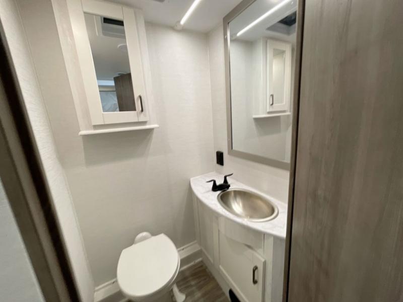 This motorhome is perfect for a small family or group of friends wanting to travel the country! Everyone will have a comfortable place to sleep between the overhead bunk, the 60" x 74" queen bed, and the jackknife sofa once converted, plus you can convert the booth dinette into one too. Prepare your best meals with the three burner cooktop and store any leftovers in the 10.2 cu. ft. 12V double door refrigerator/freezer. The separated bathroom makes it easy for one person to wash up in the shower while another uses the private toilet and sink. If you choose to add the optional TV with swing arm to the inside and the optional outside entertainment center then you will have plenty of entertainment for every trip!