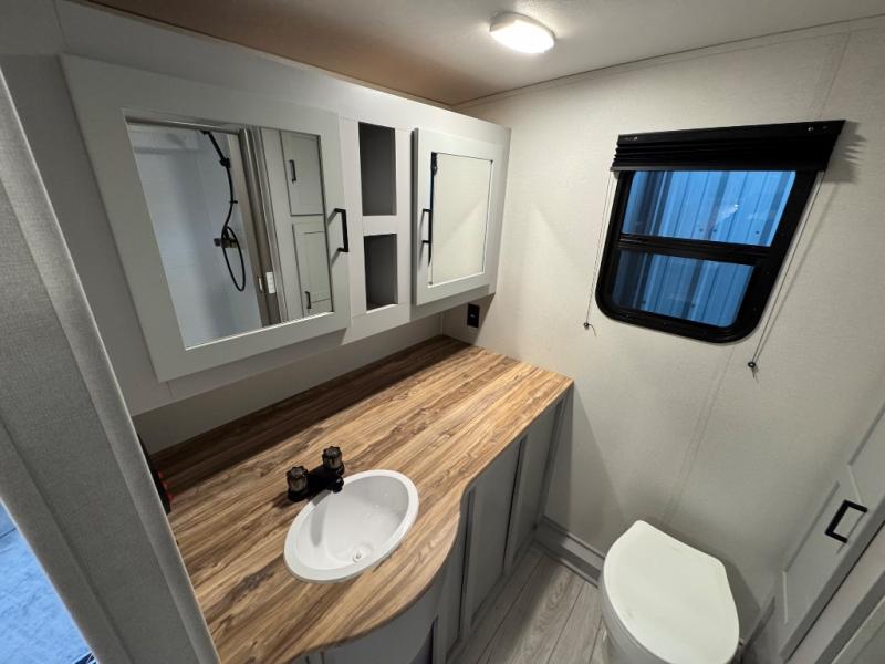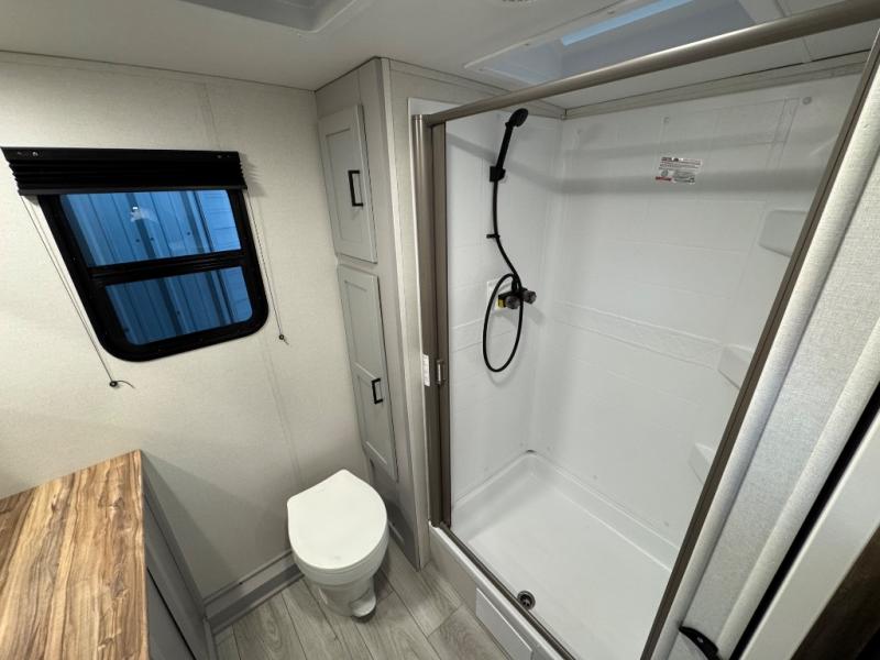 The full rear bathroom provides generous counter space, a large shower with skylight, and ample storage—making it easy to get ready for the day in comfort.