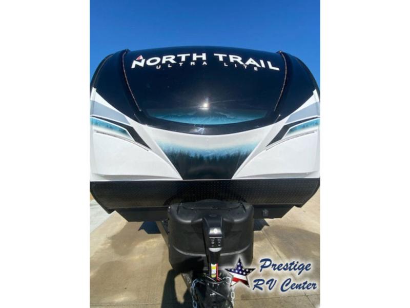 When you choose a North Trail Ultra-Lite travel trailer by Heartland you are choosing comfort, convenience, and quality craftsmanship at its best. The block foam brick insulation, enclosed and heated underbelly, plus Weather Guard thermal protection mean you can camp all year around. Each model features a Wide Trax suspension for a smooth ride, and the backup camera prep and solar prep make camping that much easier if you choose those options. Some of the other exterior features you will appreciate are the outside shower, the power stabilizer jacks and power tongue jack, and the outside speakers to keep the party going. Head inside to find stainless steel appliances, oversized windows, and premium flooring that is tear, slip, mold, mildew and cold crack resistant! You can't beat a North Trail travel trailer. Choose your favorite floorplan today!