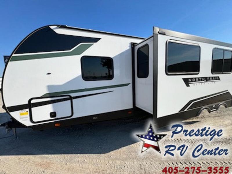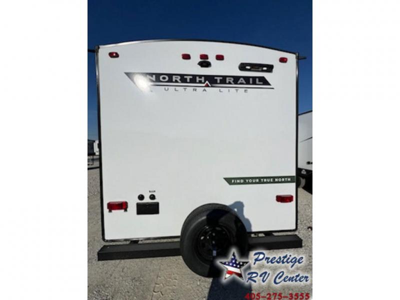 When you choose a North Trail Ultra-Lite travel trailer by Heartland you are choosing comfort, convenience, and quality craftsmanship at its best. The block foam brick insulation, enclosed and heated underbelly, plus Weather Guard thermal protection mean you can camp all year around. Each model features a Wide Trax suspension for a smooth ride, and the backup camera prep and solar prep make camping that much easier if you choose those options. Some of the other exterior features you will appreciate are the outside shower, the power stabilizer jacks and power tongue jack, and the outside speakers to keep the party going. Head inside to find stainless steel appliances, oversized windows, and premium flooring that is tear, slip, mold, mildew and cold crack resistant! You can't beat a North Trail travel trailer. Choose your favorite floorplan today!