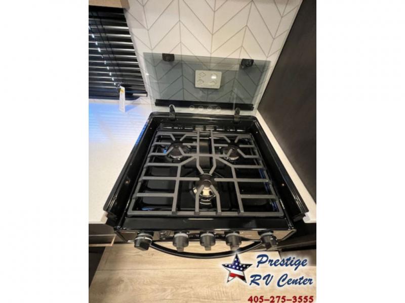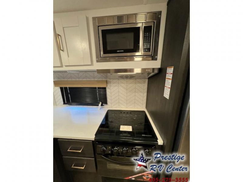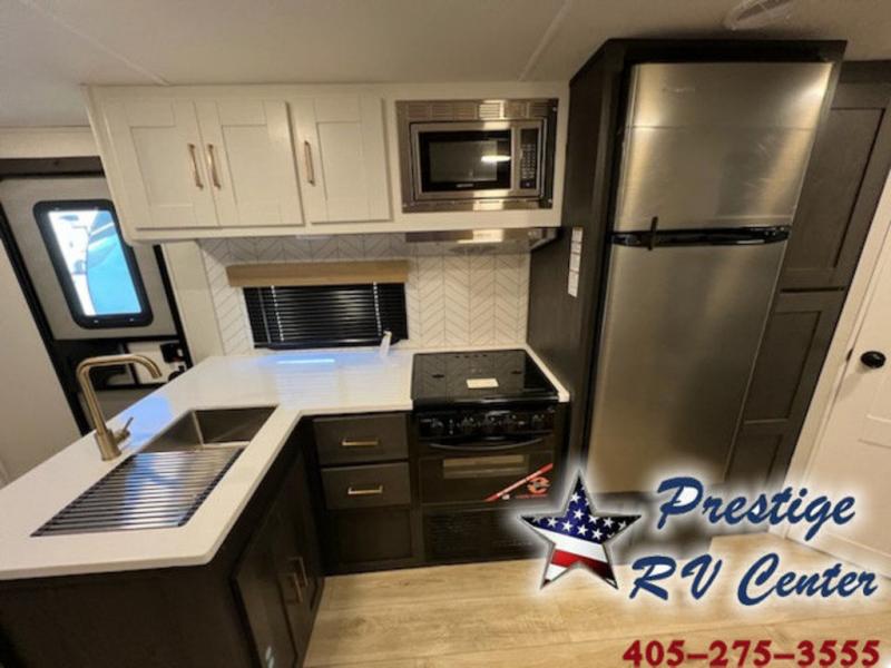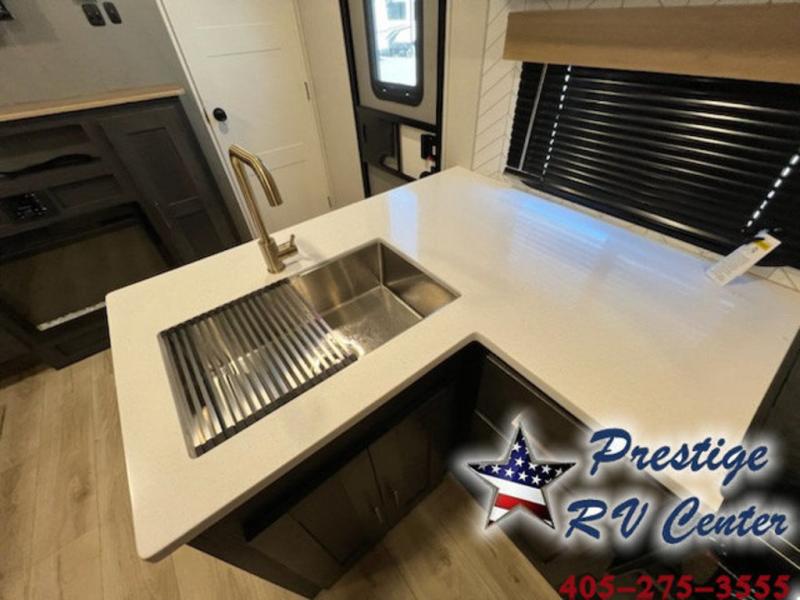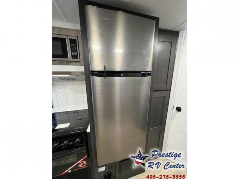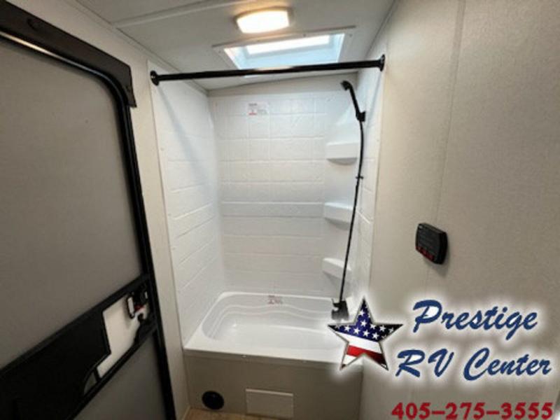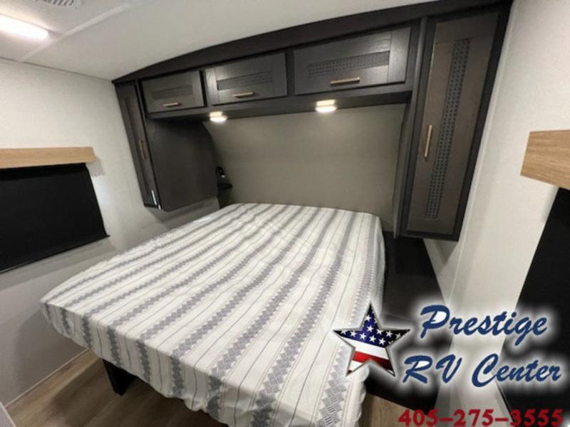 Double-size bunks make this travel trailer family and friends approved! The convertible sleeper sofa with stowaway table slide out will provide more space to stretch out in the main living area, and the rear corner bath will come in handy when cleaning up each day. The bathroom even has one of the dual entry doors to the unit so you can get back to having fun outside fast. The front private bedroom comes with a king bed with dual nightstands for your belongings. Everyone can gather under the 19' power awning with LED lights while the chef of the group prepares dinner on the exterior kitchen!