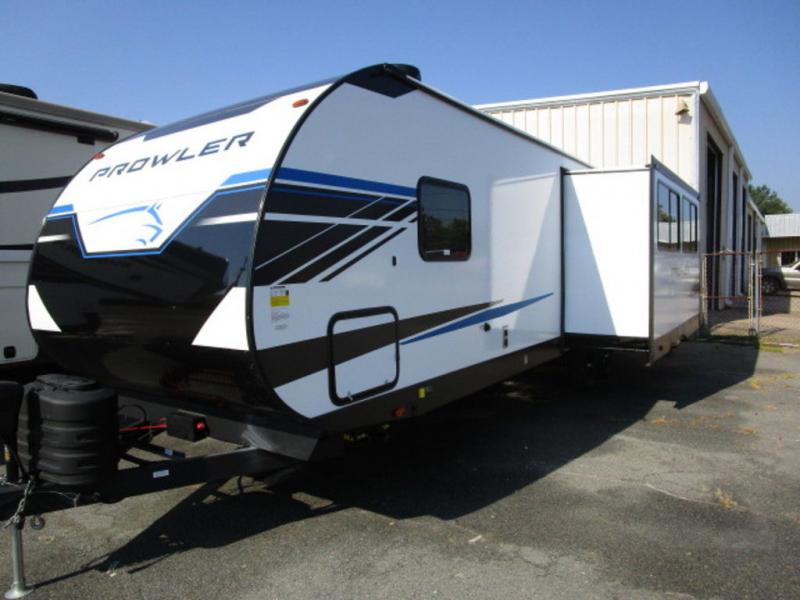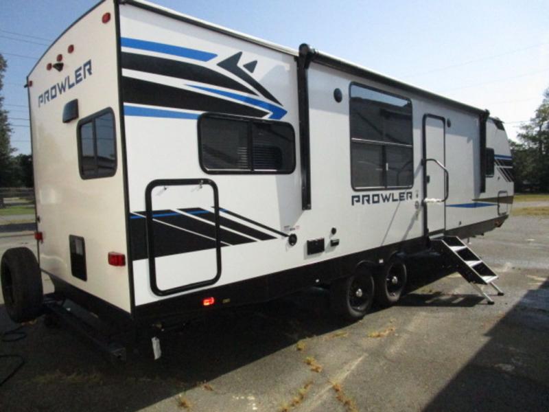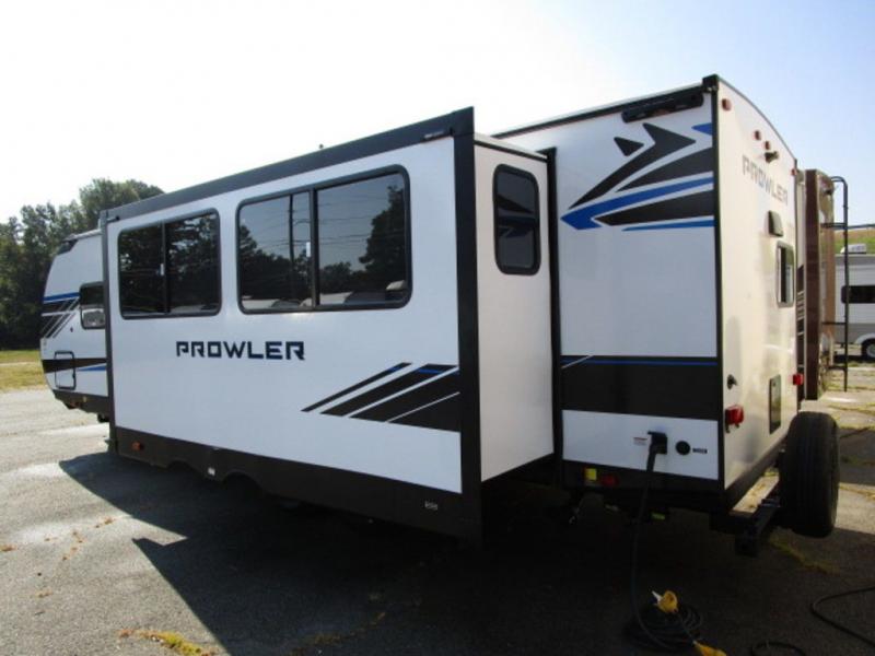 Get ready for comfortable and easy camping with the Prowler travel trailers by Heartland. These models feature durable construction with a performastructure aluminum front wall, cambered structural steel I-beam frame, and a fully walkable roof. The MEGA bright pass-through storage features 52 cu. ft. of exterior storage with mega sized access doors, LED lights, and a finished interior to keep your gear secure. You'll fall in love with the at-home kitchen that includes Duralast countertops, a residential refrigerator, plus a stainless steel double bowl undermount sink for easy clean-up. These travel trailers also feature panoramic windows, an EZ clean interior, USB charging ports throughout, and many more comforts! Don't let the Prowler travel trailers slip away. Choose your favorite floorplan today!