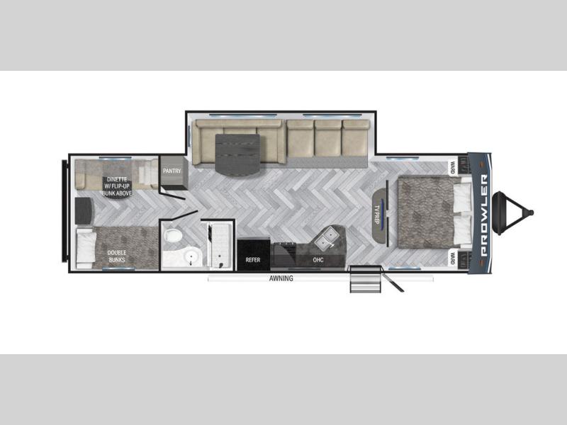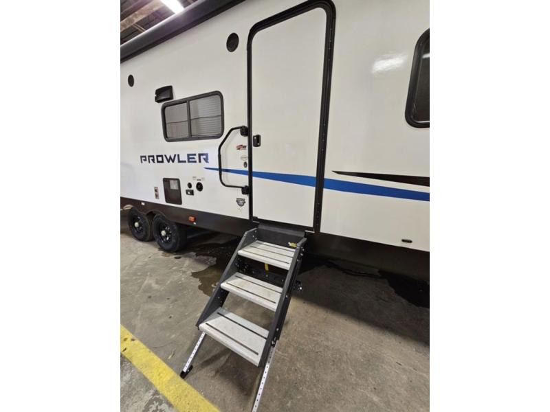 Get ready for comfortable and easy camping with the Prowler travel trailers by Heartland. These models feature durable construction with a performastructure aluminum front wall, a cambered structural steel I-beam frame, and a fully walkable roof. The MEGA bright pass-through storage features 52 cu. ft. of exterior storage with mega sized access doors, LED lights, and a finished interior to keep your gear secure. You'll fall in love with the at-home kitchen the includes Duralast countertops, a residential refrigerator, plus a stainless steel double bowl undermount sink for easy clean-up. These travel trailers also feature panoramic windows, an EZ clean interior, USB charging ports throughout, and many more comforts! Don't let the Prowler travel trailers slip away. Don't let the Prowler travel trailers slip away. Choose your favorite floorplan today!