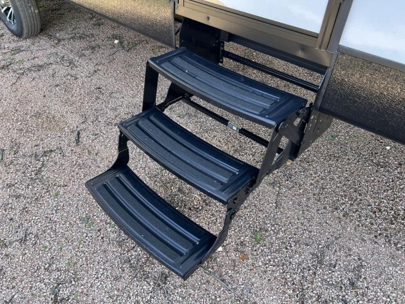 The Heartland Sundance Ultra Lite travel trailers and toy haulers are exceptionally beneficial for a family who is just starting out in the RV lifestyle. Each unit is constructed with an enclosed underbelly, a painted fiberglass front cap with LED lights, a walkable aluminum trussed barrel roof, and a rack and pinion power slide out. You'll have a spare tire and carrier for life's unfortunate mishaps and one unique key for all of your locks with the Keyed Alike system. The interior offers you woven flooring and residential-style furniture for a long-lasting traveling companion. You can use the outside spray port with a hose and sprayer for cleaning or hosing down the campsite.