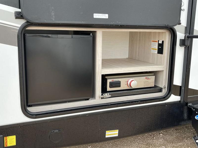 The Heartland Sundance Ultra Lite travel trailers and toy haulers are exceptionally beneficial for a family who is just starting out in the RV lifestyle. Each unit is constructed with an enclosed underbelly, a painted fiberglass front cap with LED lights, a walkable aluminum trussed barrel roof, and a rack and pinion power slide out. You'll have a spare tire and carrier for life's unfortunate mishaps and one unique key for all of your locks with the Keyed Alike system. The interior offers you woven flooring and residential-style furniture for a long-lasting traveling companion. You can use the outside spray port with a hose and sprayer for cleaning or hosing down the campsite.