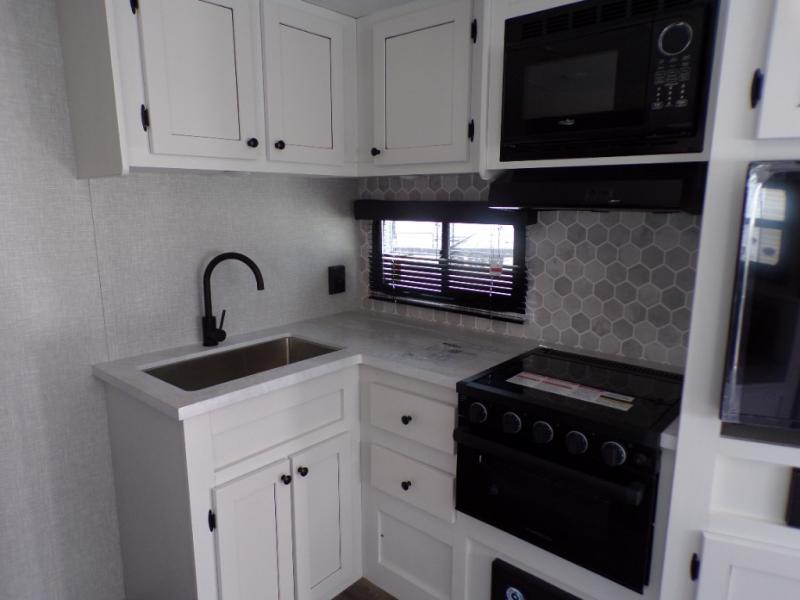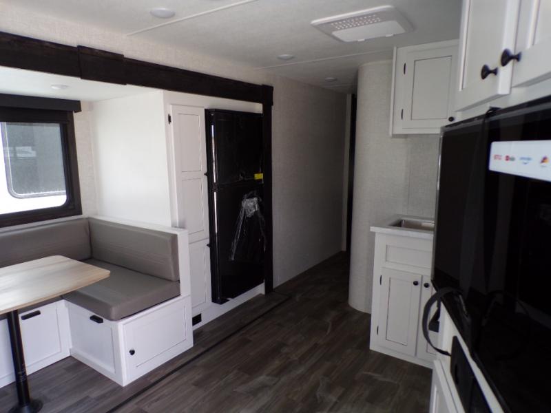 Each one of these Highland Ridge RV Range Lite travel trailers maximize their interior space while staying lightweight thanks to the TuffShell fiberglass walls! The residential floor slides create more walking around space, and the residential vinyl flooring throughout makes them kid and pet friendly. A few construction features you will appreciate include a fully-walkable roof, a thermal seal which means the underbelly is enclosed, heated, and insulated, and a fully insulated roof with a PVC roofing membrane. Plus, there is an exterior grill hookup quick connect port, self-adjusting electric brakes to help you safely arrive, and an oversized pass-through storage area with motion lighting. Come find your favorite one today!