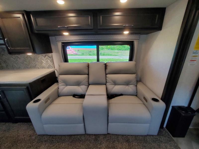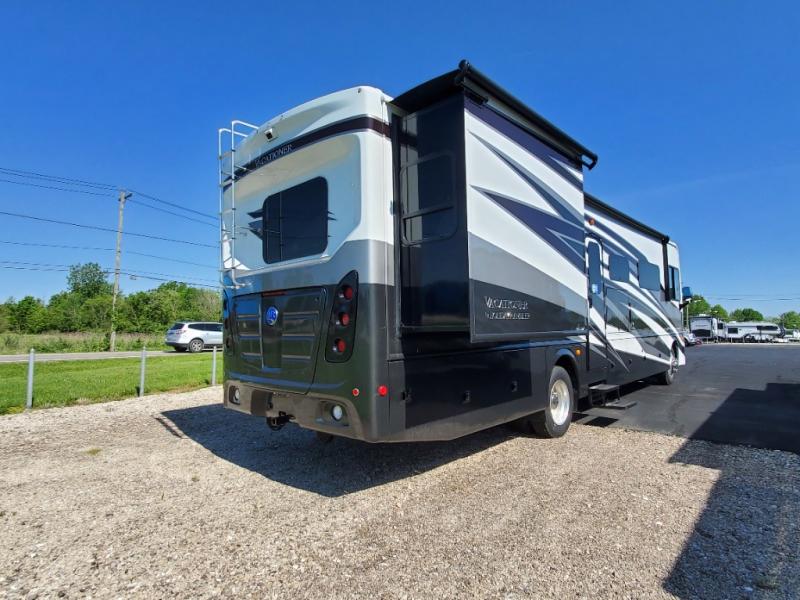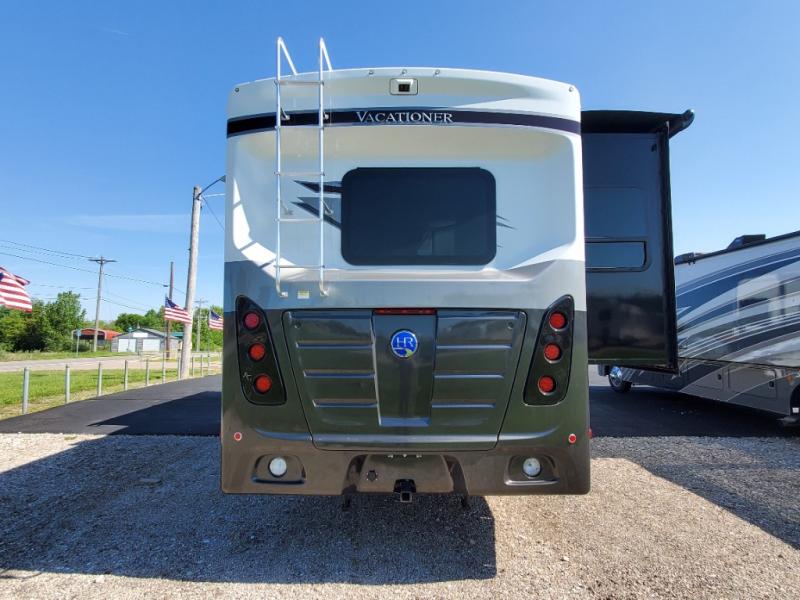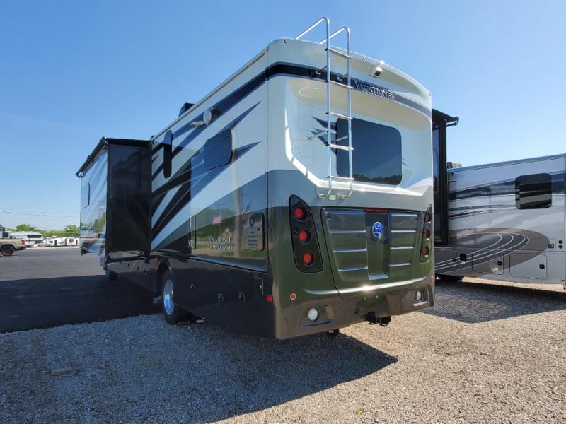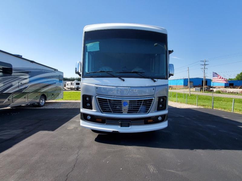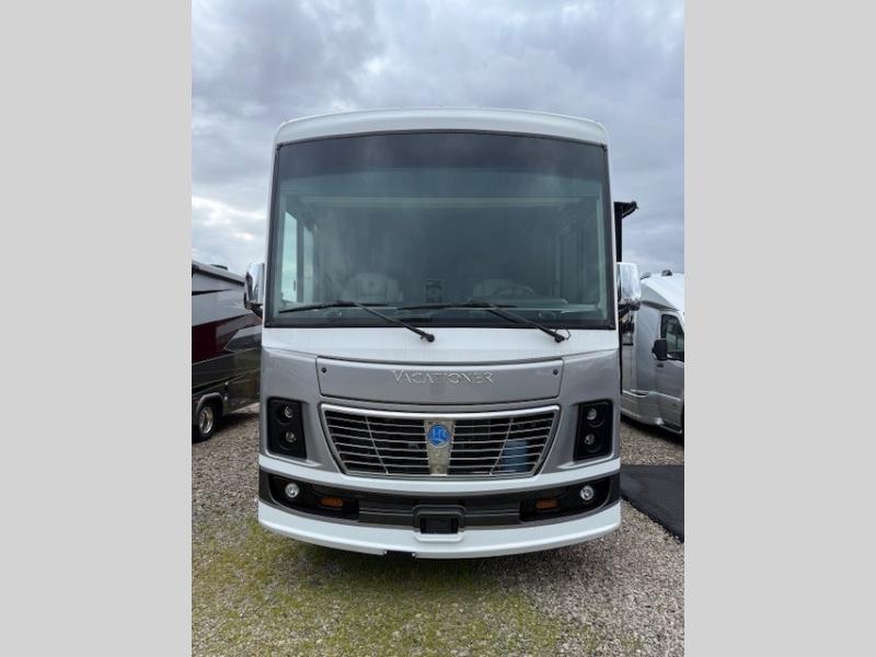Escape the boring for fun trips in a Vacationer Class A gas motorhome by Holiday Rambler. You can easily make this coach your home-away-from home with features such as dual A/C units, vinyl tile flooring, and stainless steel appliances. The bus-style luggage doors will make for easy unloading, and the automatic hydraulic leveling jacks make setting up camp easier than ever. The Vacationer is constructed with a Powerlock System with interlocking floor, walls, and roof, plus premium gel exterior Vetrosina fiberglass skin with no wood substrate for added durability. Each model includes an automotive style dash with dual monitors, a dash stereo with CarPlay and front speakers, and MultiPlex house controls that can easily be controlled by your smart phone or tablet. The list of standard features doesn't stop there. You'll have an environmentally friendly 100W solar panel, an exterior entertainment center, large holding tank capacities, and so much more!