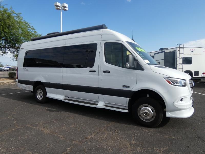 The compact Xpedition Class B diesel motorhomes by Holiday Rambler will open up a world of exploration in an easy to drive van. Each model includes a roof top solar charging system, all-season tires. There is a rear back-up camera system to easily maneuver the city streets, and you'll love the power awning with an LED light when you're set up at camp. Inside, you'll find front overhead storage, dove tail drawers with residential soft close slides, plus side and rear screen doors to let fresh air in and keep bugs out. Each coach also includes a 13,500 BTU roof-top A/C plus a diesel and electric hot water heater to keep you comfortable year around.