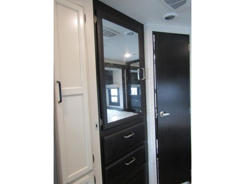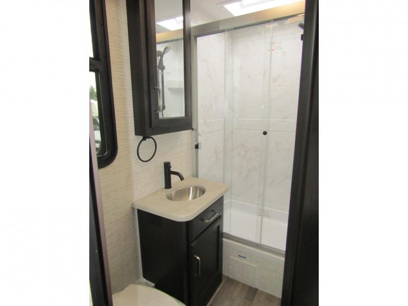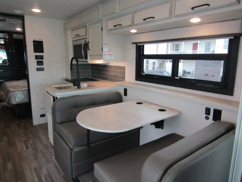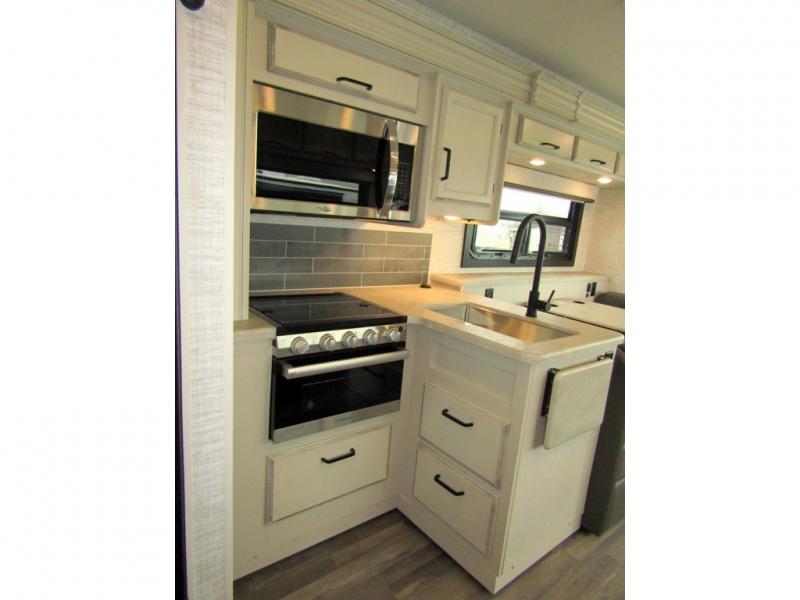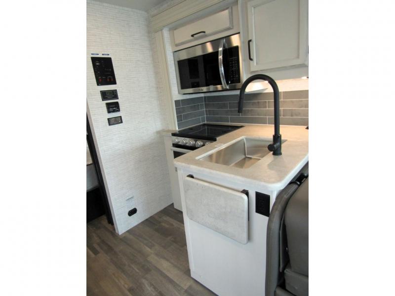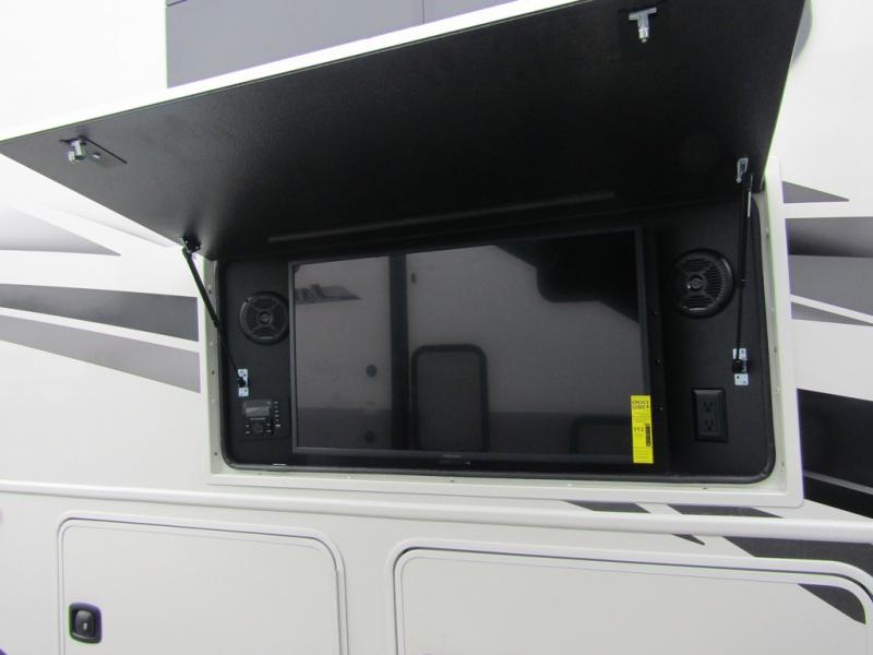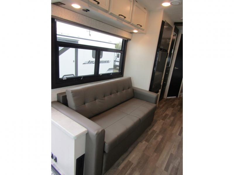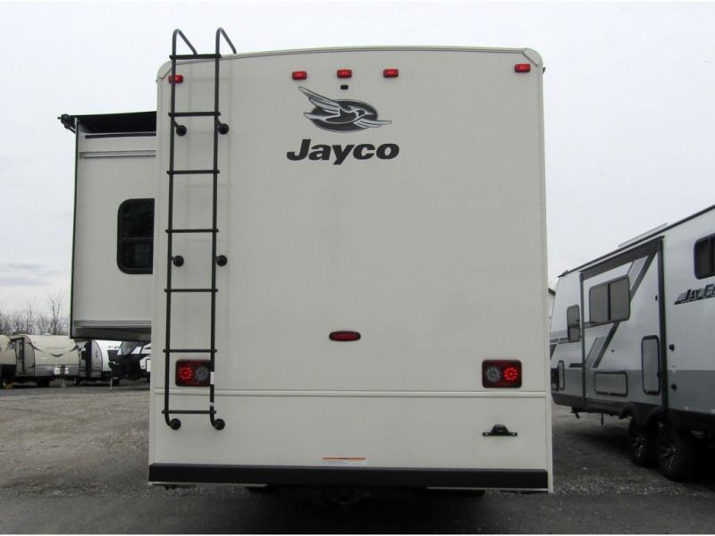 When you enjoy the drive as much as the destination, you know you made the correct choice for your adventures! The driver and passenger seats also swivel to create more seating when you are parked. And the Jayco-exclusive, easy operation legless dinette plus jack-knife sofa give everyone a place to relax and visit. You will also find sleeping space for five to six when you utilize the furniture and you choose the drop down overhead bunk option. The rear corner bedroom gives you a king bed, two wardrobes, and a full bathroom just a few steps away. The kitchen offers full amenities including a countertop extension, and you might like to choose the 15 cu. ft. refrigerator option. Don't forget about the outside entertainment center, and the 39" LED HD Smart TV inside when you want to watch a show, a movie or the big game.