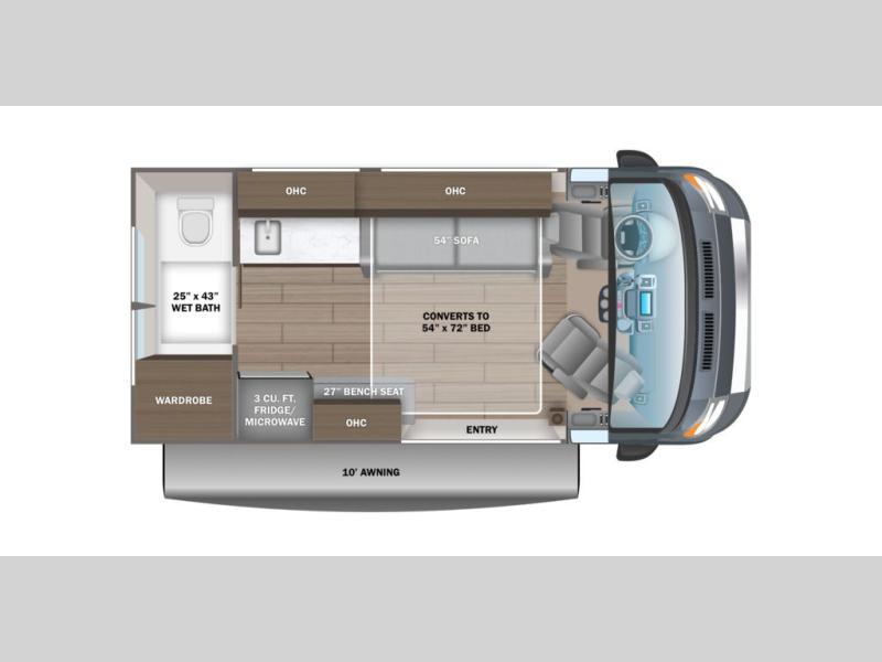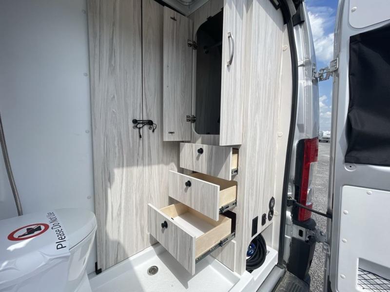Enjoy every trip you take in this small, but mighty camper van! You will enjoy the drive just as much as the destination with a 10.1" Uconnect 5 NAV infotainment center and a ParkView rear backup camera. There is a tri-fold sofa to relax on once you park, and at night you can convert the sofa to a 54" x 72" bed. And the 27" bench seat is close by the entrance to provide a place to pull on your hiking boots. After you've worked up an appetite outdoors, you can prepare lunch on the portable induction cooktop, clean up with the stainless steel sink with a cover, and store leftovers in the 3 cu. ft. refrigerator/freezer. This model also includes a rear wet bath so you can freshen up before bed, and the bath wardrobe will let you keep your clothes and towels tidy!
