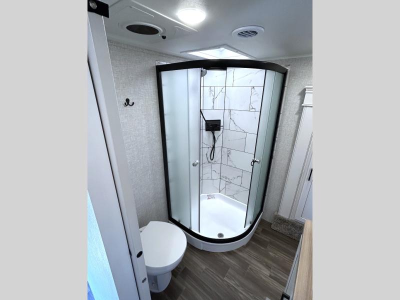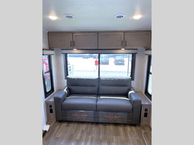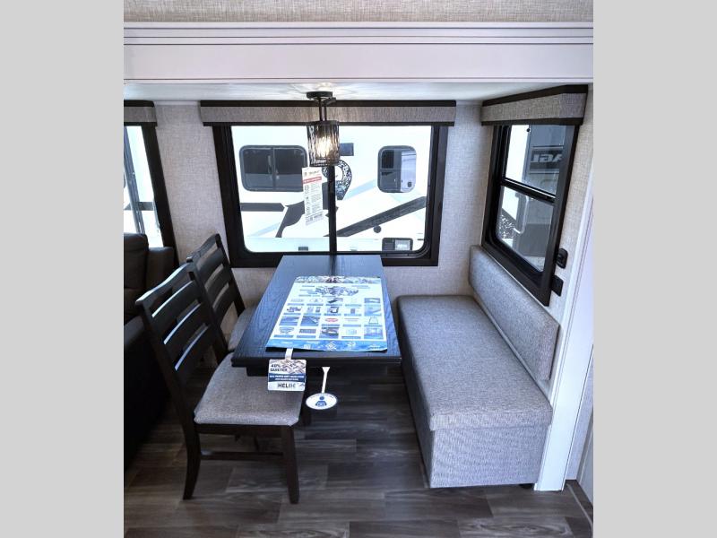 With any Eagle fifth wheel or travel trailer by Jayco you will appreciate durable construction materials, like the Magnum Truss Roof and the Stronghold VBL laminated walls. The JAYCOMMAND Smart RV system puts you in control of your RV's functions, and the 5 Star Handling Package will provide smooth towing from home to camp. Each model features Climate Shield zero-degree tested weather protection and the industry-exclusive HELIX cooling system that will keep you comfortable year around. Some of the exterior conveniences you are sure to love are the pass-through storage with Slam-Latch baggage doors and an automotive style front cap with max turn radius. The Eagle fifth wheels and travel trailers are designed to make you feel at home with solid hardwood slide fascia, residential vinyl flooring, a bathroom skylight, and plenty of storage for all your belongings.