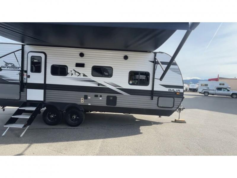 These Jayco Jay Flight travel trailers have been a family favorite for years with their lasting power and superior construction. An integrated A-frame and magnum truss roof system holds them together. When you tow one of these units you're towing the entire unit and not just the frame. With dark tinted windows, you have more privacy and safety. The vinyl flooring throughout will be easy to clean and maintain too. Come find your favorite model today!