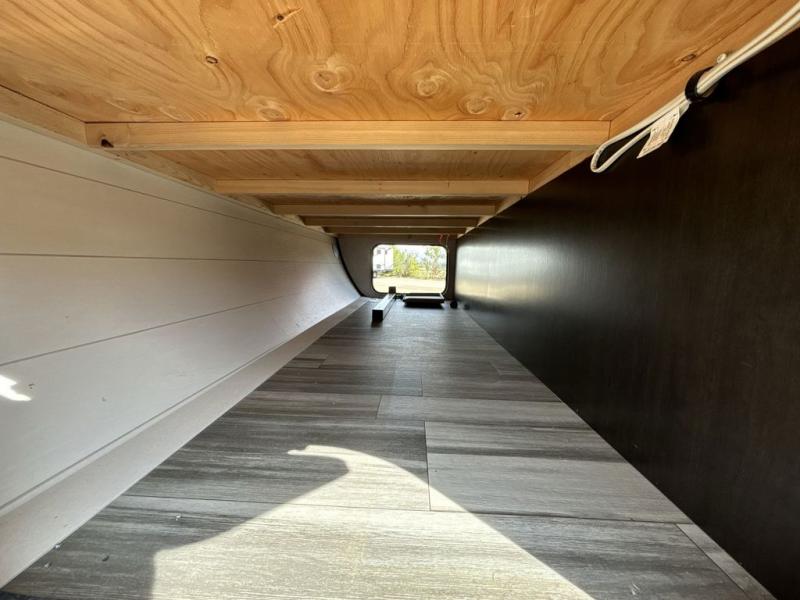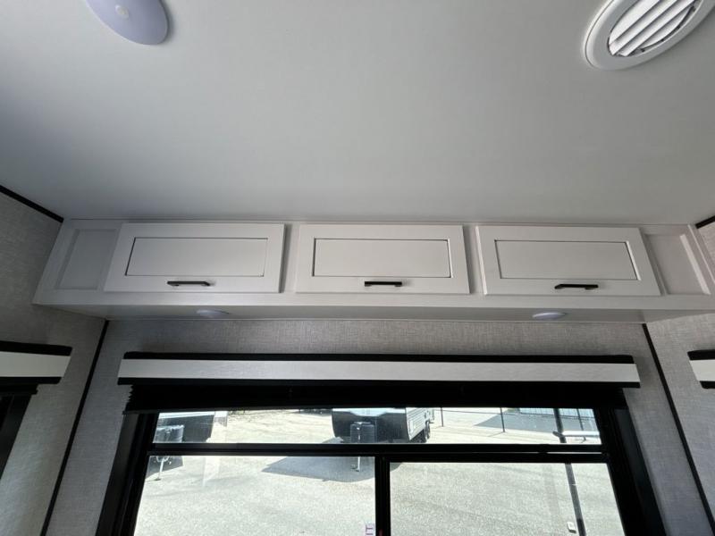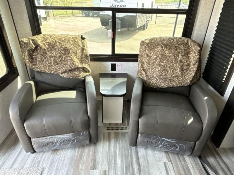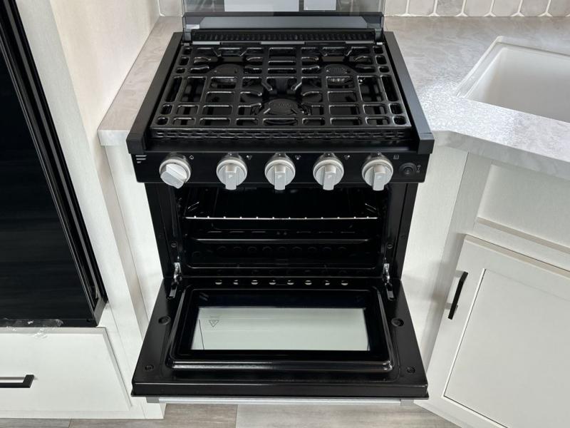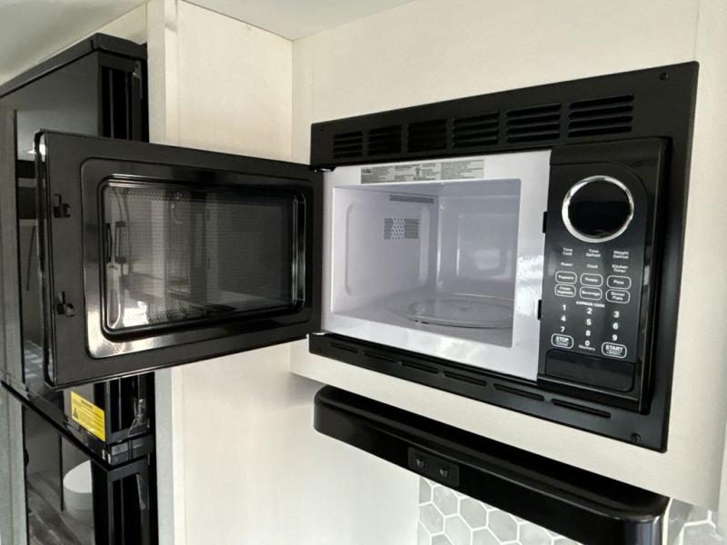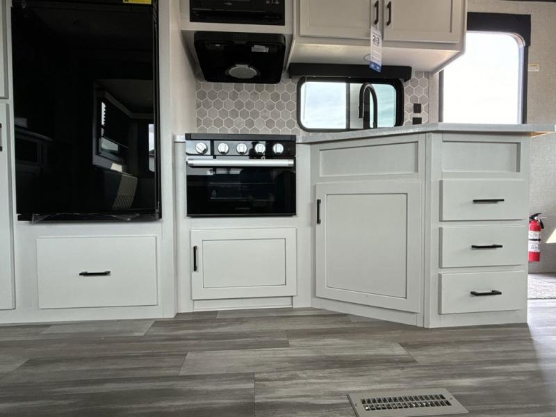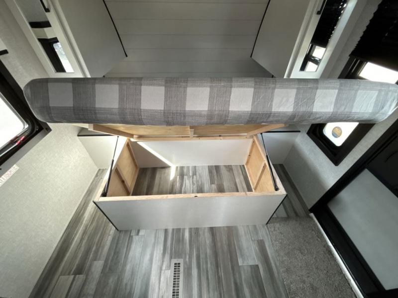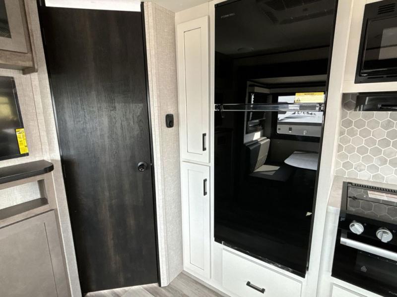 When you want to travel and see new places, this trailer gives you the flexibility to sleep two to four, plus offers a full walk-through bathroom with access from the main area and the front private bedroom. You will also appreciate having a second entry/exit door in the bedroom, a walk-around queen bed, plus dual wardrobes giving you your own side of the bed. The bathroom also has a radius shower and linen storage. The kitchen includes full amenities to make your own meals, and a pantry to keep your dry goods and snacks. You will love the rear swivel rockers with table in between to place your drinks, and the jackknife sofa plus booth dinette offer more seating, sleeping space, and extra floor space since they are within a slide.