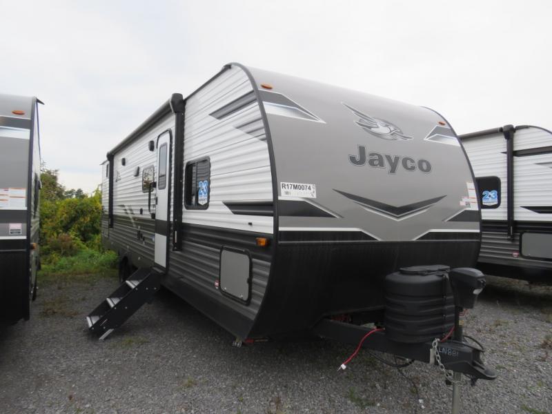 These Jayco Jay Flight travel trailers have been a family favorite for years with their lasting power and superior construction. An integrated A-frame and magnum truss roof system holds them together. When you tow one of these units you're towing the entire unit and not just the frame. With dark tinted windows, you have more privacy and safety. The vinyl flooring throughout will be easy to clean and maintain too. Come find your favorite model today!
