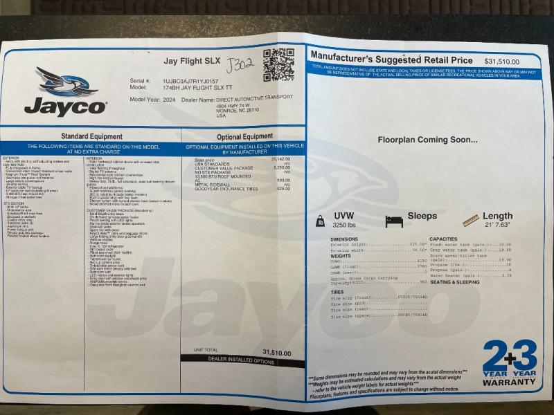 Jayco Jay Flight SLX travel trailer 174BH highlights: