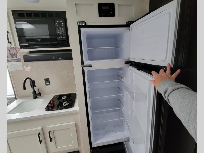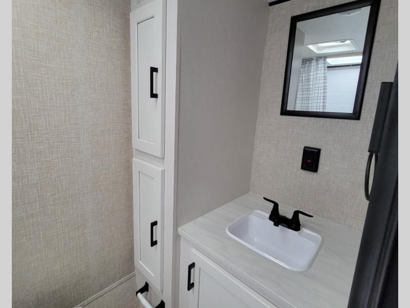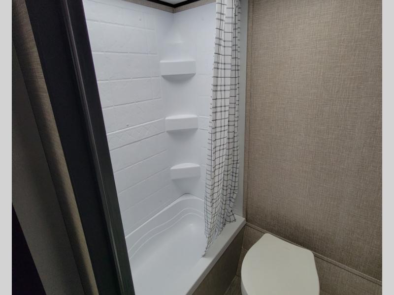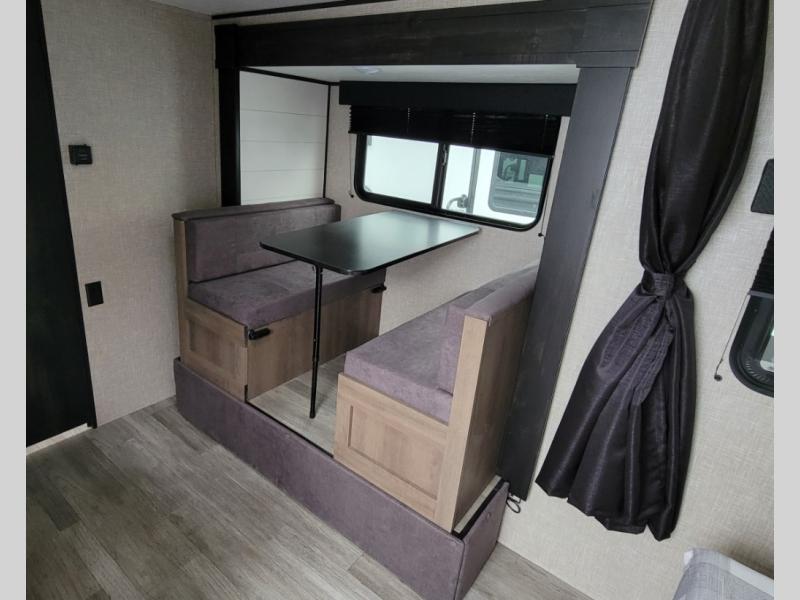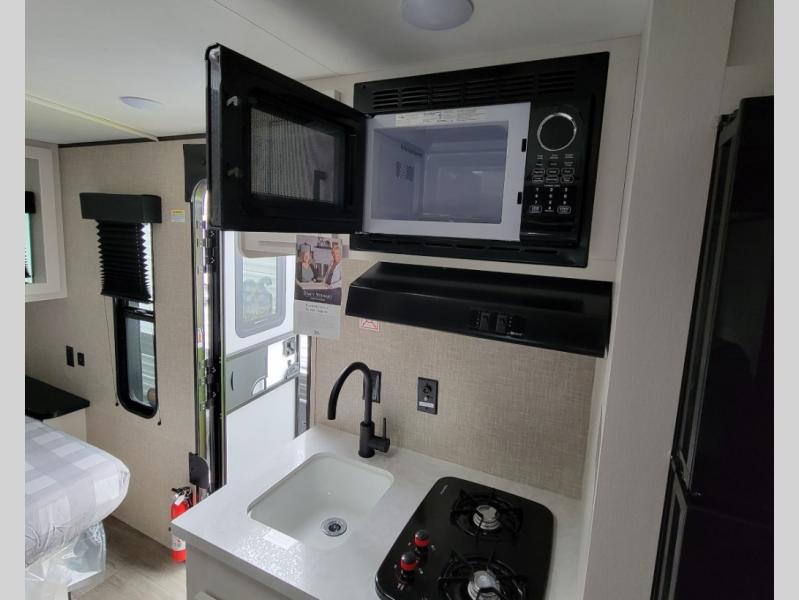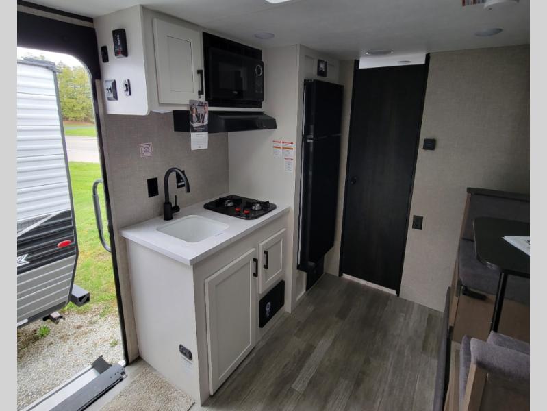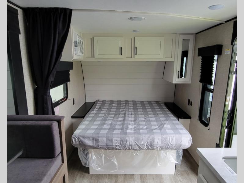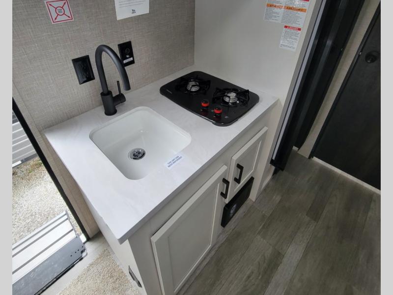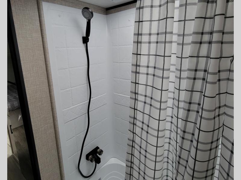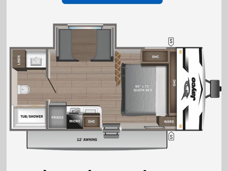 You and your family or friends can take this Jay Flight SLX travel trailer out for some fun! There is a queen bed up at the front, and there are also overhead cabinets and a bedroom wardrobe next to the bed for easy storage. The booth dinette rests on a single slide, so there is more floor space as you work in the kitchen, and it can accommodate one or two more campers for sleeping at night depending on size. The rear bathroom gives you space and privacy, and it also offers you a linen closet to store your towels. For other storage needs, you can use the 8 cu. ft. 12V refrigerator and the exterior storage compartments.