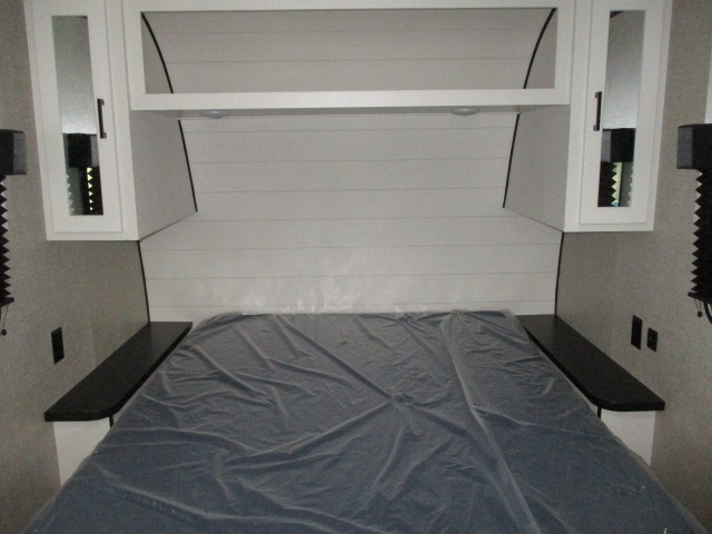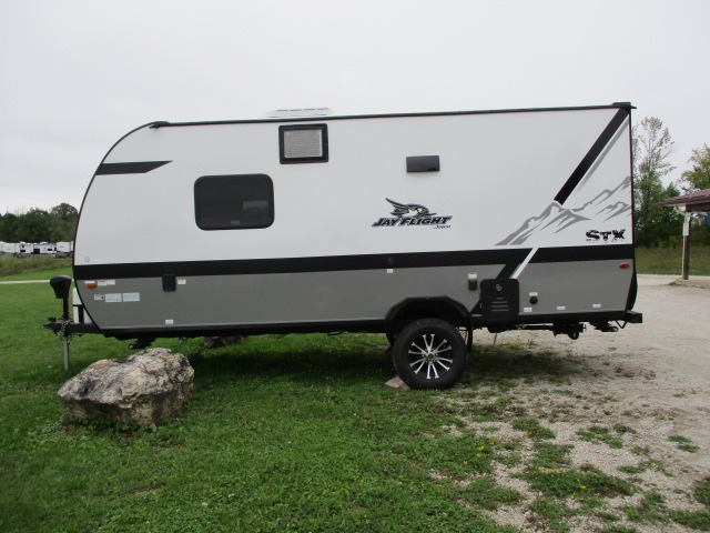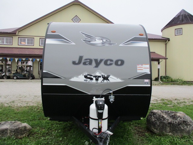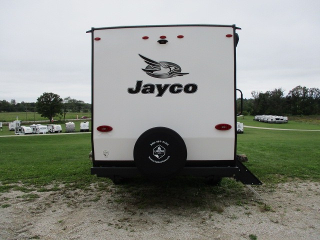The Jayco Jay Flight SLX travel trailer is quite easy to own because it weighs less than 3,500 pounds, and it comes with a single axle. Built on a fully integrated A-frame with galvanized-steel, impact-resistant wheel wells, the Jay Flight SLX has quality at its very foundation. That quality continues on to the electric self-adjusting brakes, easy-lube hubs, Magnum Truss roof system, friction-hinge entry door with window, and LP quick connect. Some of what the mandatory Customer Value Package includes are two stabilizer jacks with sand pads, American-made Goodyear Endurance tires, Keyed-Alike entry and baggage doors, and JaySMART LED lighting. Buying your trailer in the East versus the West will determine which optional package is available to you. The East offers an optional STX Edition, and the West offers an optional Baja Package. Both packages come with a 30LB LP bottle, a large fresh water tank, Goodyear off-road tires, an enclosed underbelly, a double entry step, four stabilizer jacks, and a deluxe graphics package. Specific to the STX Edition, you will find a wide-stance axle, aluminum rims, a power tongue jack, and powder-coated wheel fenders while the Baja Package offers you a flipped axle.