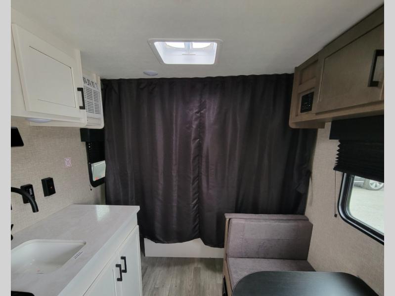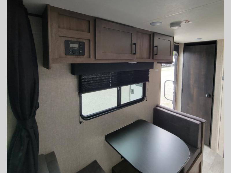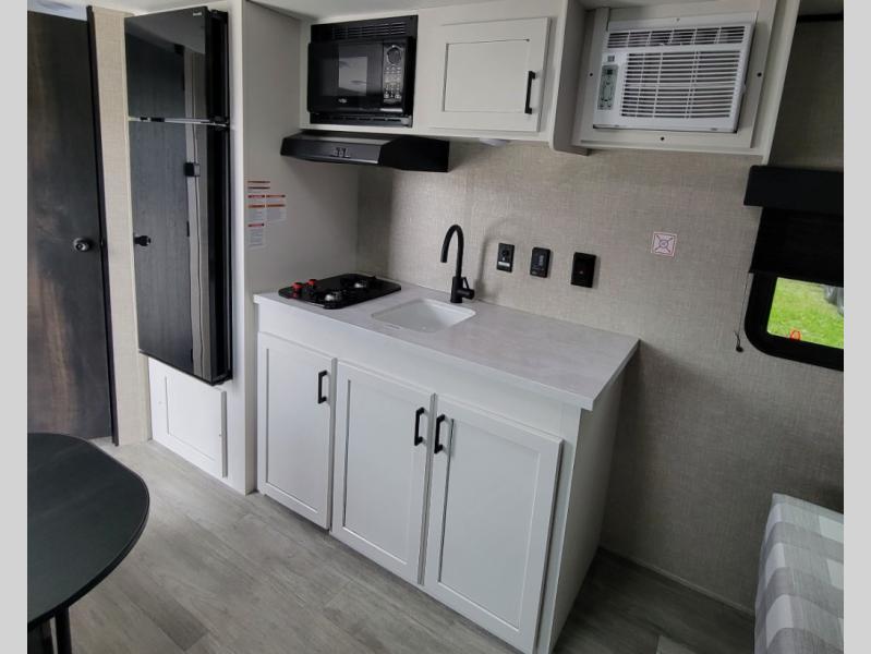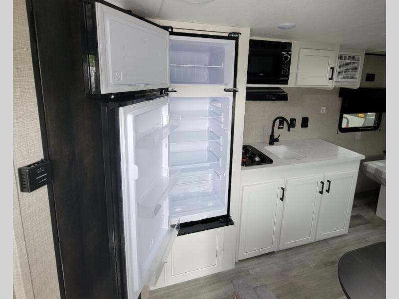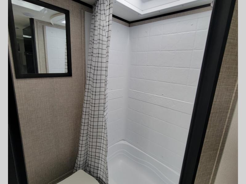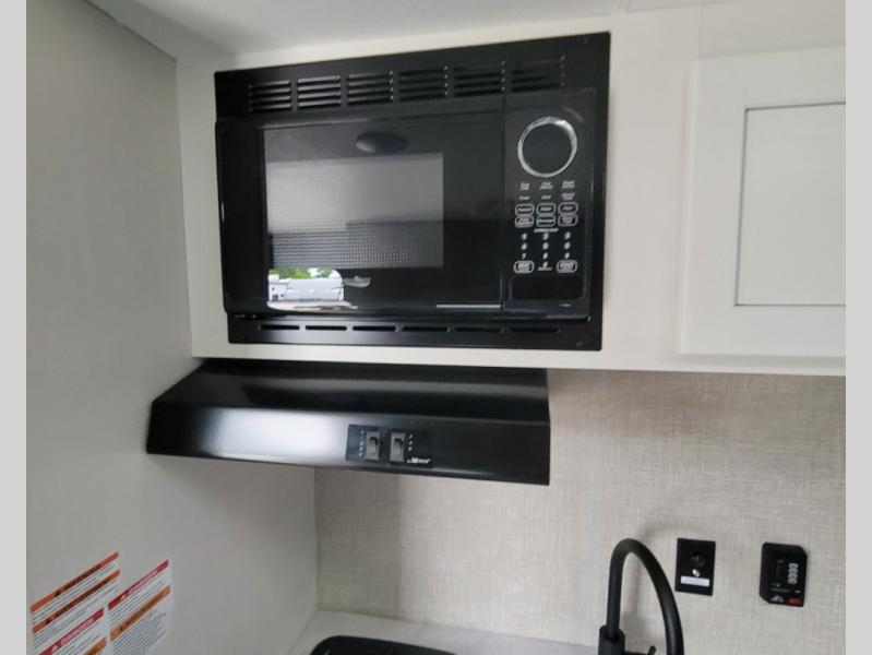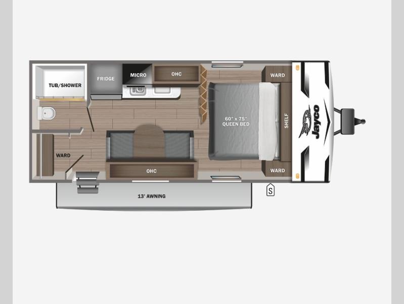 Gain some freedom to travel with this Jay Flight SLX travel trailer! You can rest comfortably each night on an RV queen bed that can be sectioned off into a semi-private bedroom with a privacy curtain. There is a private bathroom with a tub/shower and toilet so that you can stay clean, and the kitchen has a two-burner range and microwave oven for all of your inside cooking needs. Outside, there is a 13' power awning to protect you from too much sun, and you can also store extra gear in the exterior storage compartment which is quite handy.
