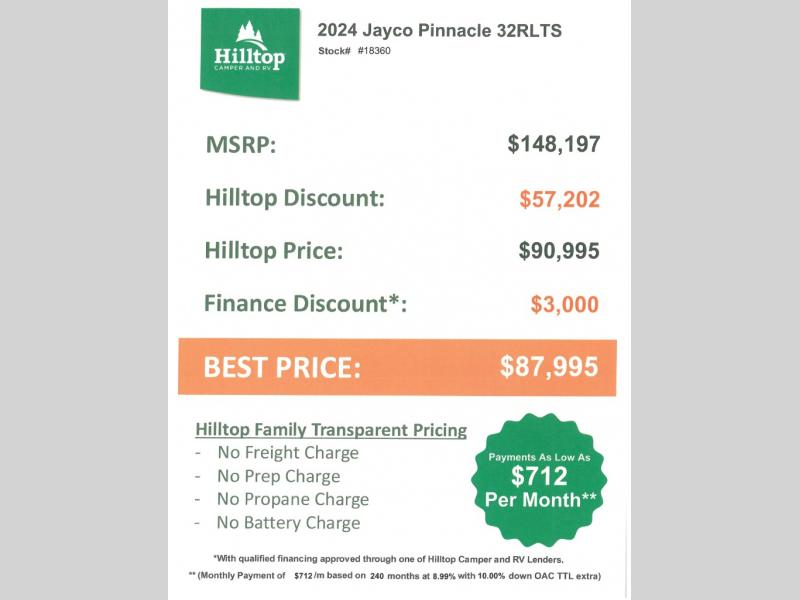 New 2024 Jayco Pinnacle 32RLTS Fifth Wheel