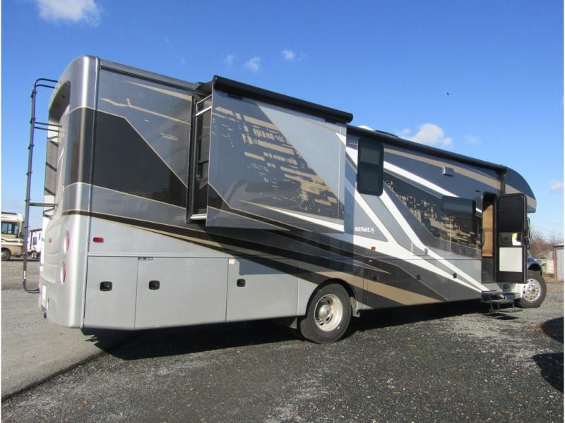 Experience comfort and space with each one of these Jayco Seneca Class C diesel motorhomes! The unique front end diesel Freightliner S2RV chassis won't cramp the cabin, and the superior towing power allows you to tow a toy or car while keeping it at a lower weight point. You will find that these models are built sturdy with a powerful blend of precise handling and renowned stability with features like the StrongholdVBL lamination, the JRide Premium system, and the one-peice, seamless, fiberglass roof that will withstand all of your adventures. The Firefly total coach control system simplifies your camping experience with the ability to monitor and control key RV features in the palm of your hand on your phone or tablet. Come find the right model that meets your needs today!