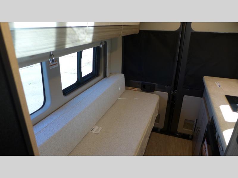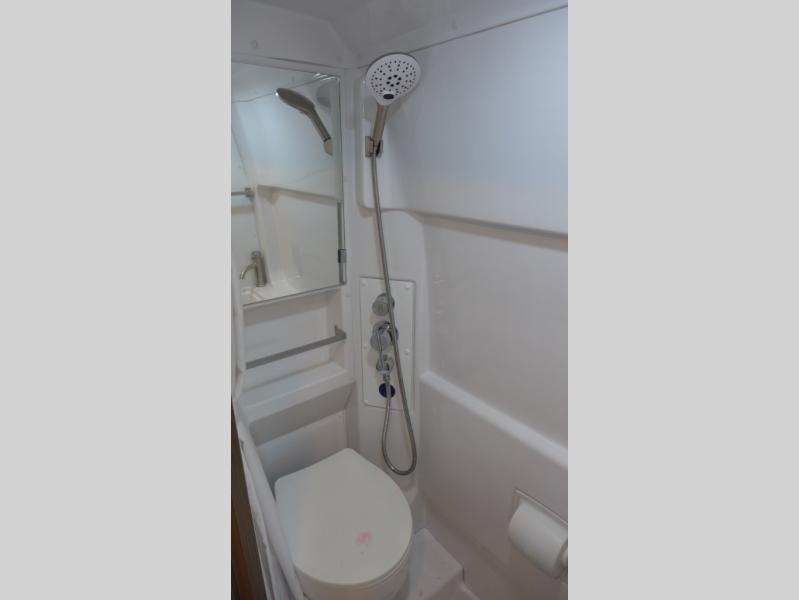 Head into the great unknown with this cozy gas motorhome for two. You will enjoy the drive on swivel captain's seats, plus there are two additional cab seats if you're planning a day trip with friends. Prepare a quick lunch in the convection microwave when you stop, and grab a cold drink from the 5.3 cu. ft. DC refrigerator. This model includes a 76" sofa to relax on during the day, which can be converted to a 48" x 76" extended bed at night, and you can freshen up each morning in the convenient 25" x 47" wet bath! You will also love the pop-top roof area that will allow you to sleep up to four!