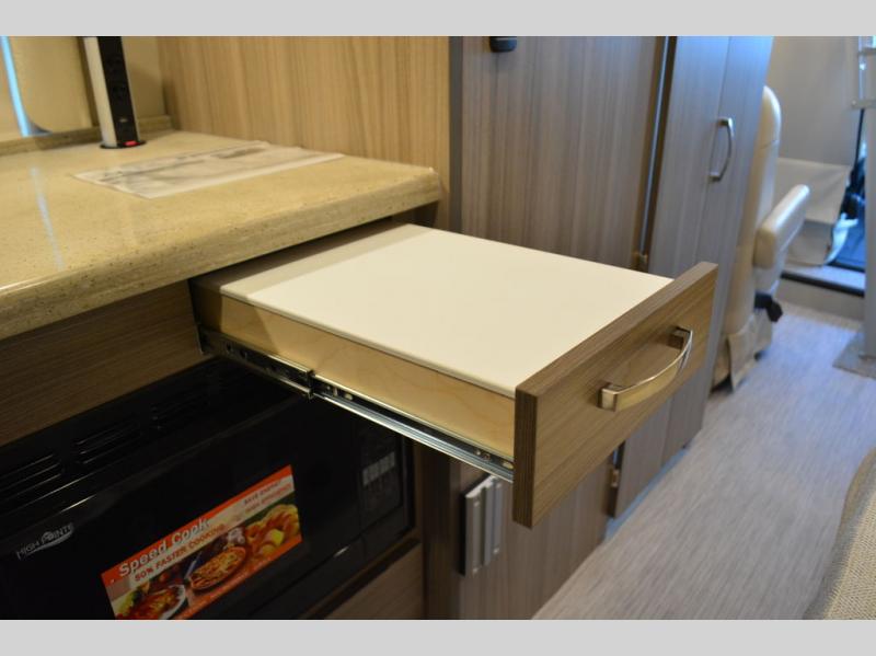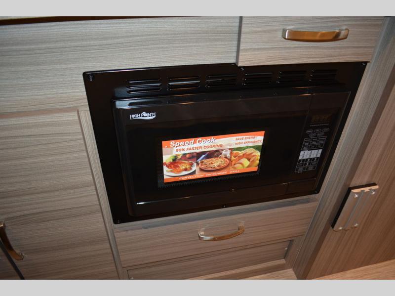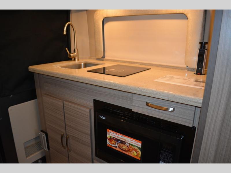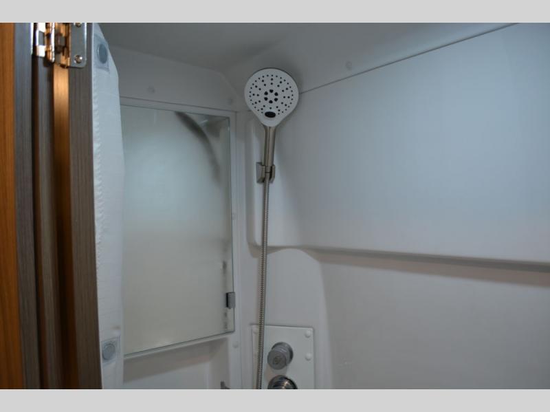 Head into the great unknown with this cozy gas motorhome for two. You will enjoy the drive on swivel captain's seats, plus there are two additional cab seats if you're planning a day trip with friends. Prepare a quick lunch in the convection microwave when you stop, and grab a cold drink from the 5.3 cu. ft. DC refrigerator. This model includes a 76" sofa to relax on during the day, which can be converted to a 48" x 76" extended bed at night, and you can freshen up each morning in the convenient 25" x 47" wet bath! You will also love the pop-top roof area that will allow you to sleep up to four!