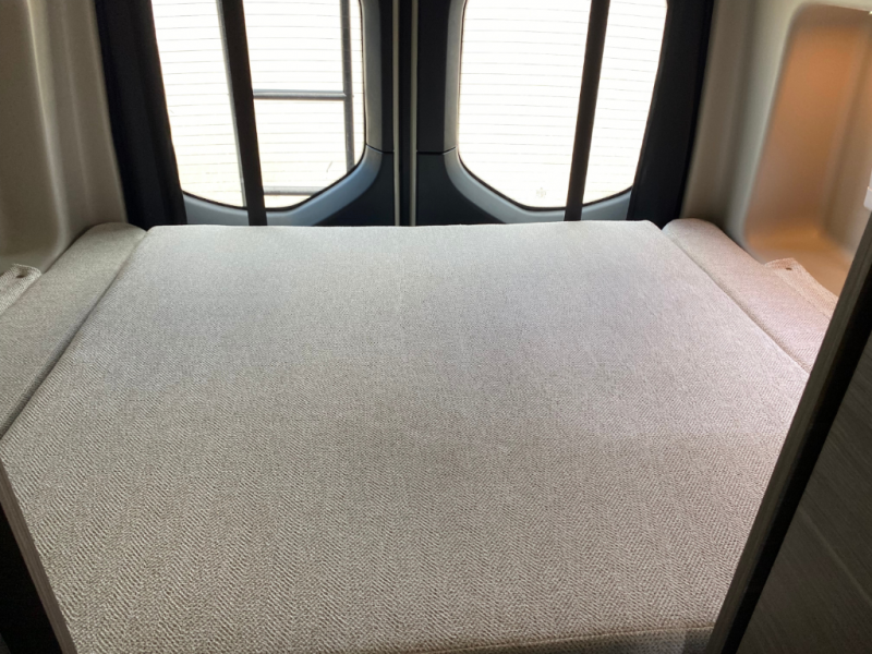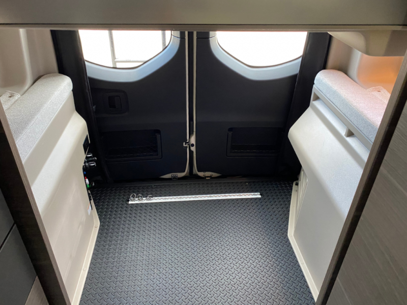Take some time to get away with your favorite person in this Terrain Class B diesel motorhome! Not only is there room to sleep two with the power lift bed that has a 750-LB capacity, but there is also room to seat a total of four people on the two heated power swivel cab seats and the two additional bucket seats with slide and recline features in front of the removable/adjustable table. You'll love cooking in the kitchen with a portable induction cooktop, stainless steel sink, plus a pantry and 3 cu. ft. DC refrigerator for food storage. The wet bath is very functional with its removable bamboo shelf, powered roof vent, and retractable clothes line.