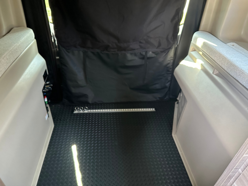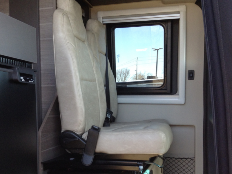 Take some time to get away with your favorite person in this Terrain Class B diesel motorhome! Not only is there room to sleep two with the power lift bed that has a 750-LB capacity, but there is also room to seat a total of four people on the two heated power swivel cab seats and the two additional bucket seats with slide and recline features in front of the removable/adjustable table. You'll love cooking in the kitchen with a portable induction cooktop, stainless steel sink, plus a pantry and 3 cu. ft. DC refrigerator for food storage. The wet bath is very functional with its removable bamboo shelf, powered roof vent, and retractable clothes line.