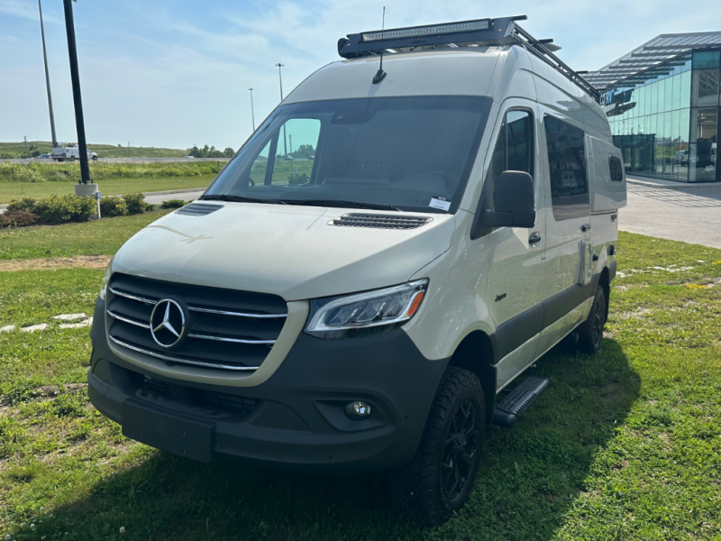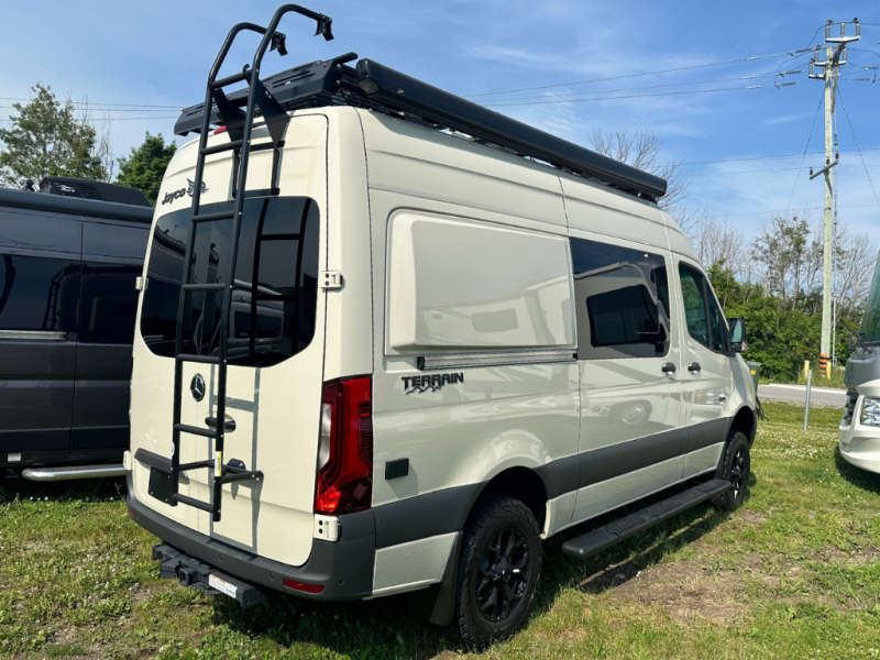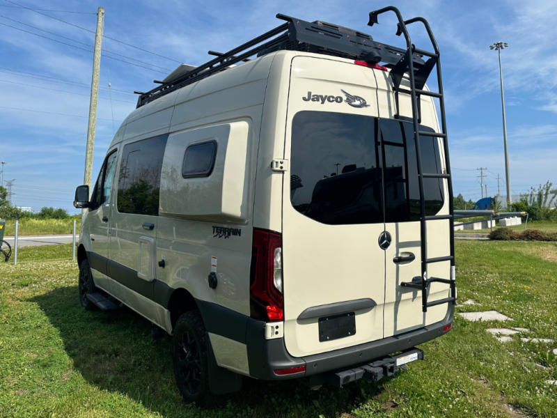 The Jayco Terrain Class B diesel motorhome is just waiting for you to hit the trails with it! The Mercedes-Benz Sprinter 2500 AWD chassis will provide an outstanding driving experience, plus there is a 9-speed transmission and a 2.0L 4-cyliner diesel engine with 211HP and 332 ft.-lb. of torque to power your adventures. You will appreciate the added safety features, such as active lane keeping assist, attention assist, and the parking package with a 360° camera that will help keep you stay safe on the road. This coach includes a 48V-210 amp hour smart lithium battery that provides 10kW of hours of power when you're off-grid, and when you're back at camp, you can check in using the Starlink satellite internet system. The Tecnoform European-style cabinetry is ultra stylish and the durable rubber floor will withstand your spontaneous van life. And don't overlook the exterior with its Carefree armless awning with an LED light, a double roof rack and moveable roof ladder, a fold-down exterior table, and more!