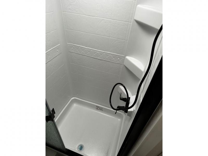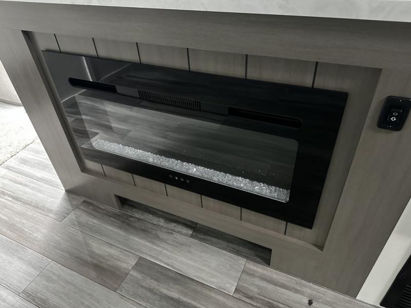 Step inside this rear kitchen travel trailer for fun family vacations. The large slide will provide the chef space to cook, while the kids watch a movie on the Smart LED TV. If the weather is just right, you will probably want to cook on the outside kitchen while the kids ride their bikes around the campsite. This model includes a tri-fold sofa and a booth dinette that will be perfect for meal times, relaxing, and sleeping space at night. You and your spouse can take the front private bedroom with a queen bed and dual wardrobes for your things, and the full bath is centrally located for easy access!