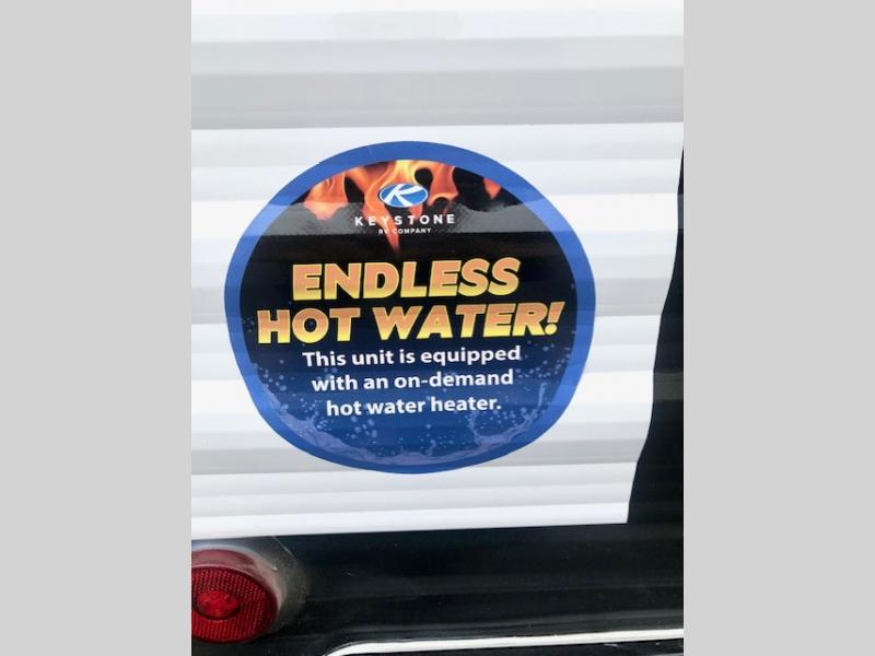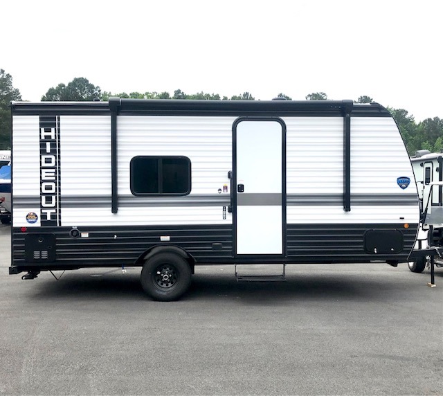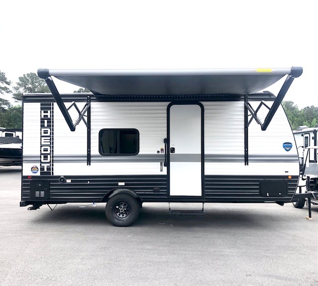 Open your horizons with the Hideout Sport Single Axle travel trailers by Keystone. They are compact, convenient, and lightweight; everything you're looking for in an RV! Each model features an aluminum exterior, tinted safety glass windows, and an I-beam frame with stamped steel cross-members and outriggers for added support. The interior includes blackout night shades for added privacy and real wood doors and drawers that will give a more at-home touch. The Girard tankless water heater is a feature you won't want to camp without, and the LED lighting will keep your space bright and open!