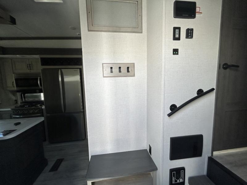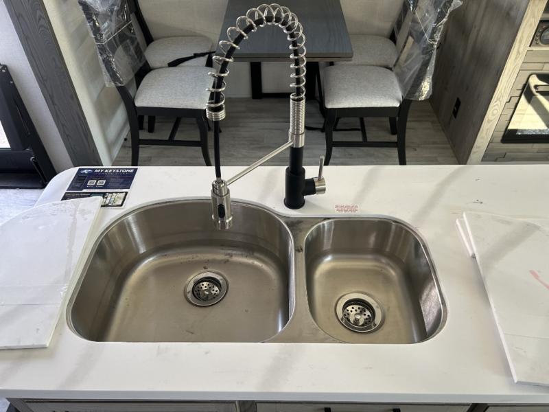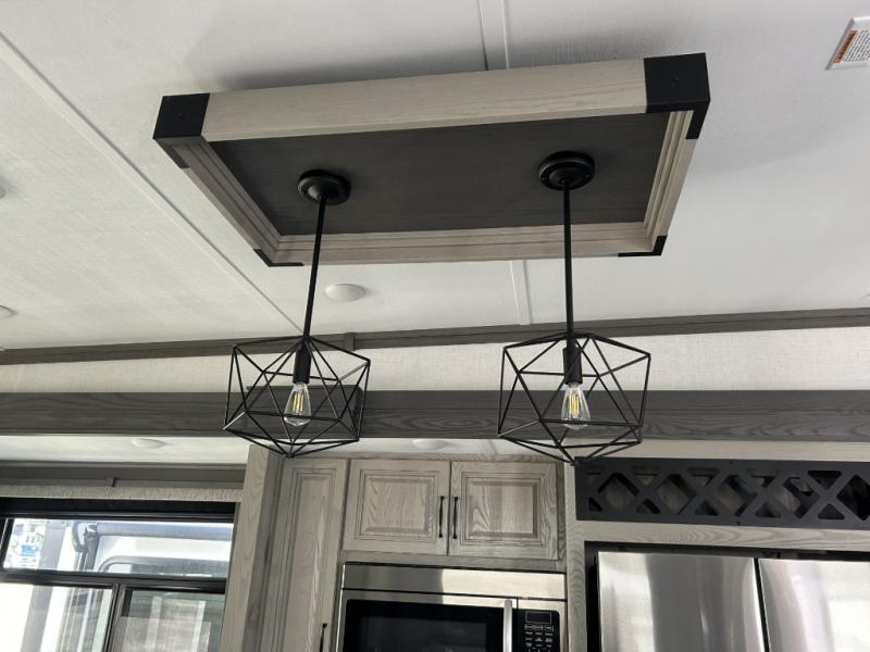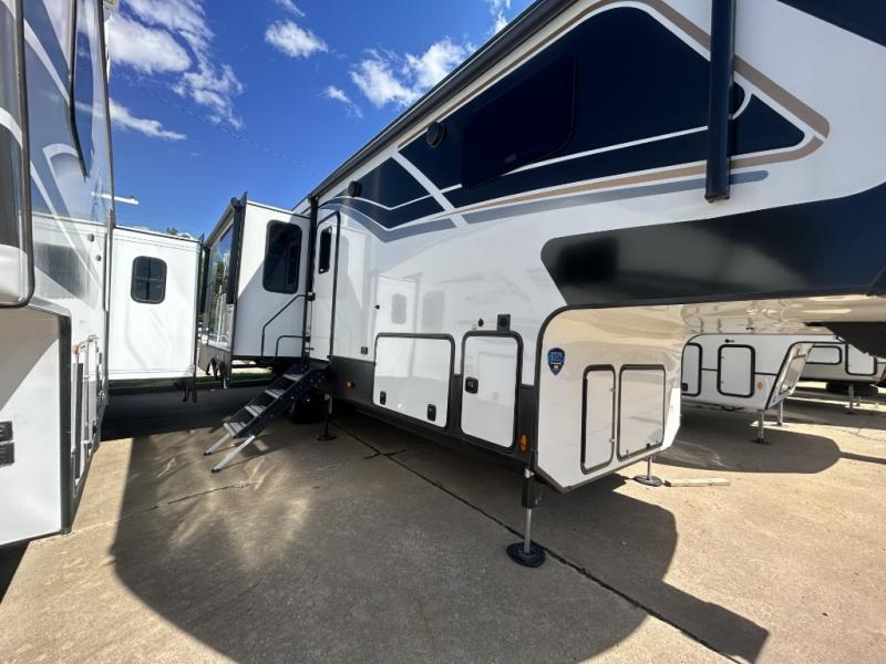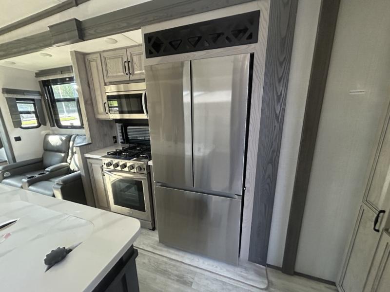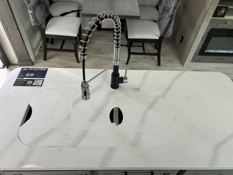 Luxury is not an option, it is a standard with each one of these Keystone RV Alpine fifth wheels! A 8' 4" wide body construction will create an open, residential feeling, and cutting-edge technology will provide a hassle-free camping experience. The Tru-Fit slide construction is more durable and minimizes motor structural stress, as well as resists leaking, and the Blade Pure airflow system provides residential comfort with its high-performance. Each fifth wheel includes designer flooring throughout, stunning solid wood cabinet doors, luxurious crown molding, and solid surface countertops in the kitchen. The SolarFlex Protect 200 comes standard or you can choose the optional SolarFlex Discover 440i for even more off-grid capabilities. The exterior also includes an outside shower with hot and cold water, Lippert strut assisted SolidSteps, Hitch Vision with LED lighting, and many more conveniences!