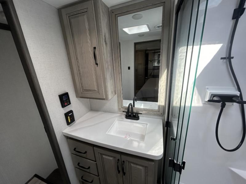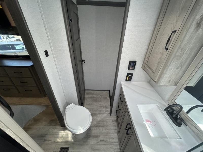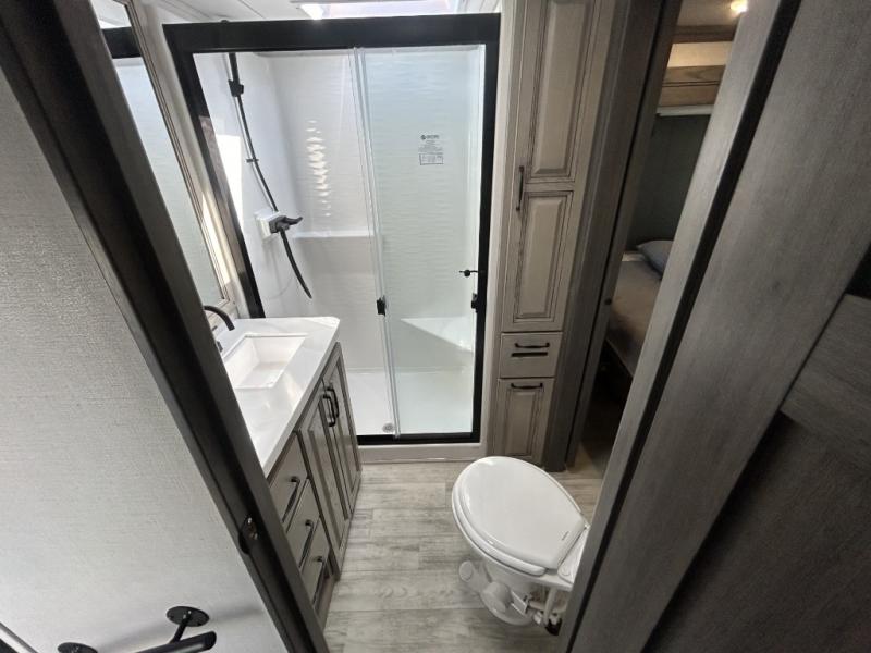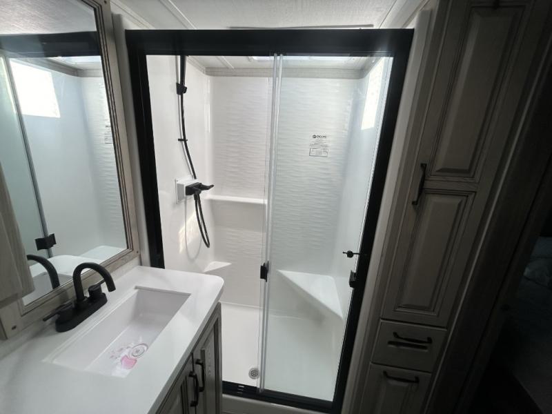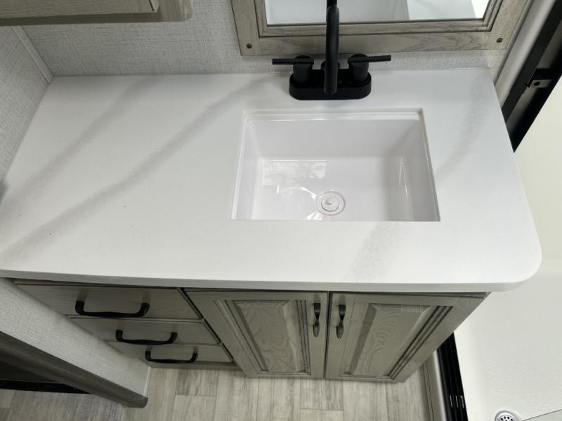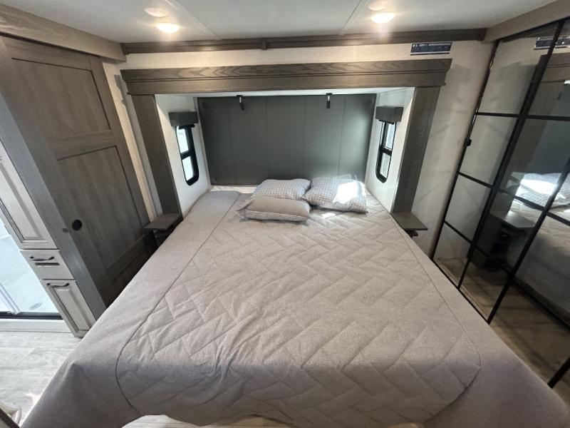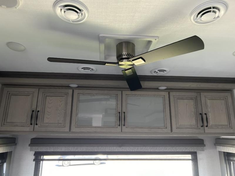Luxury is not an option, it is a standard with each one of these Keystone RV Alpine fifth wheels! A 8' 4" wide body construction will create an open, residential feeling, and cutting-edge technology will provide a hassle-free camping experience. The Tru-Fit slide construction is more durable and minimizes motor structural stress, as well as resists leaking, and the Blade Pure airflow system provides residential comfort with its high-performance. Each fifth wheel includes designer flooring throughout, stunning solid wood cabinet doors, luxurious crown molding, and solid surface countertops in the kitchen. The SolarFlex Protect 200 comes standard or you can choose the optional SolarFlex Discover 440i for even more off-grid capabilities. The exterior also includes an outside shower with hot and cold water, Lippert strut assisted SolidSteps, Hitch Vision with LED lighting, and many more conveniences!