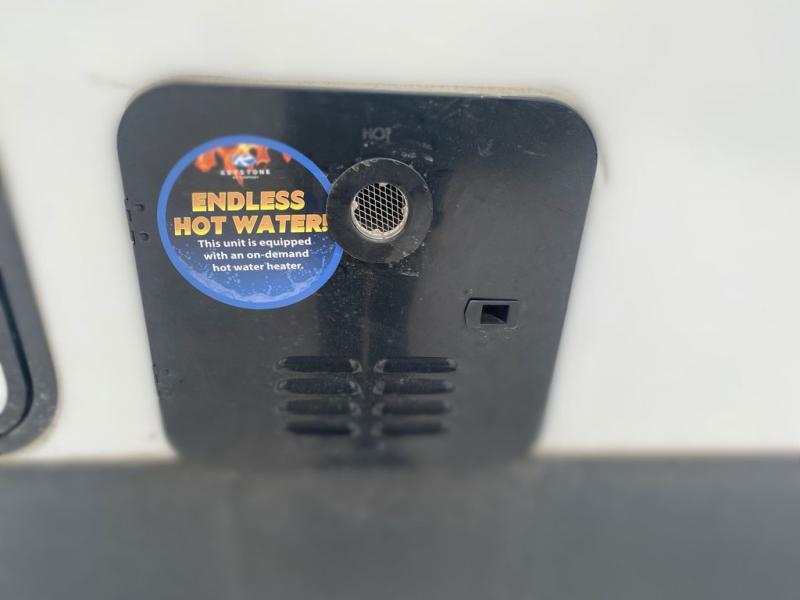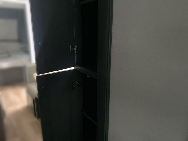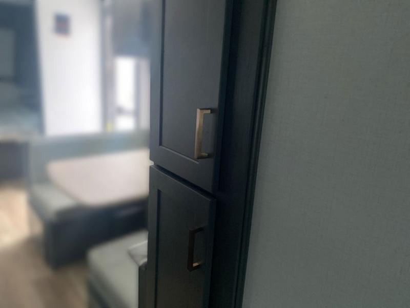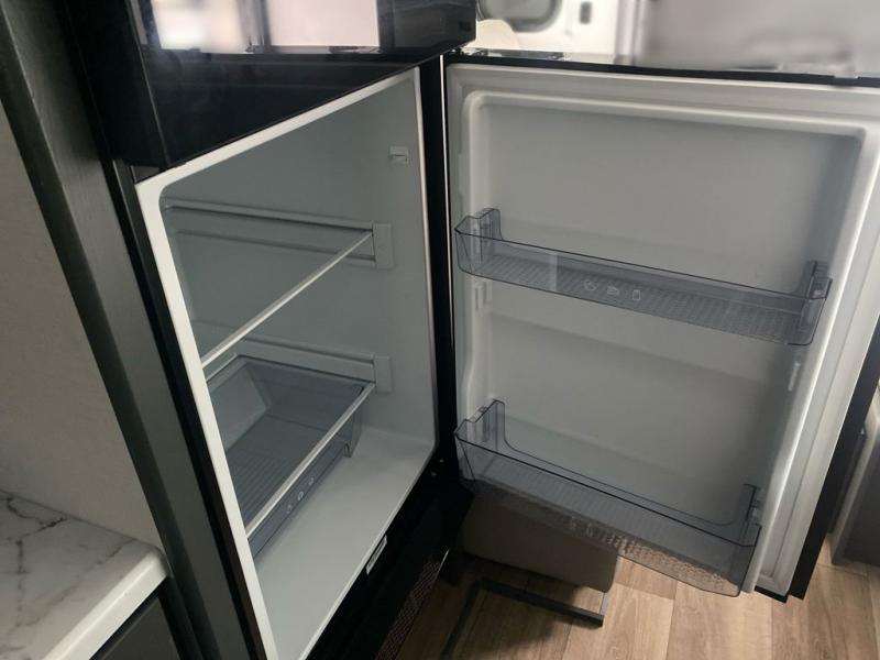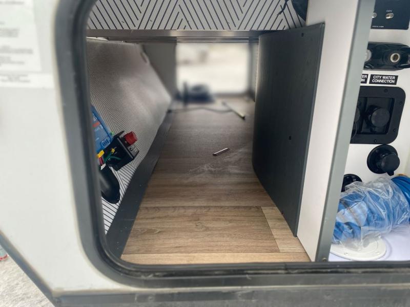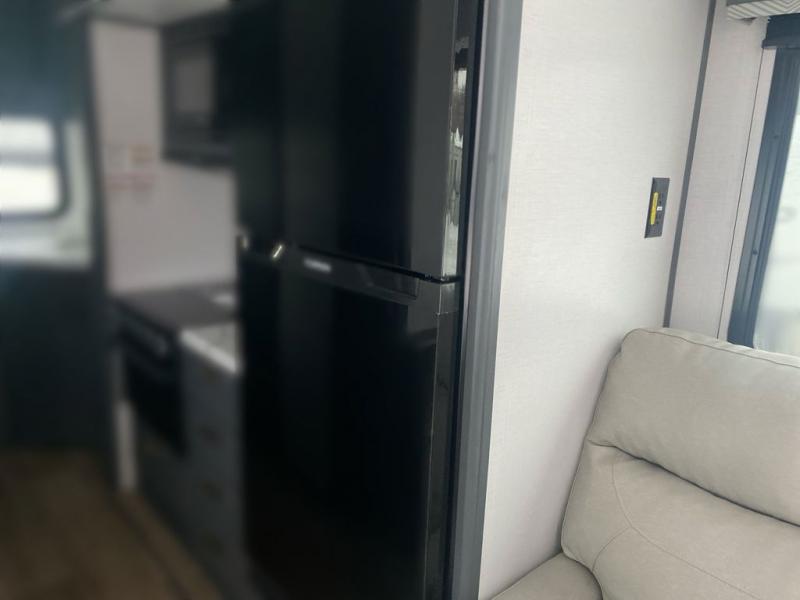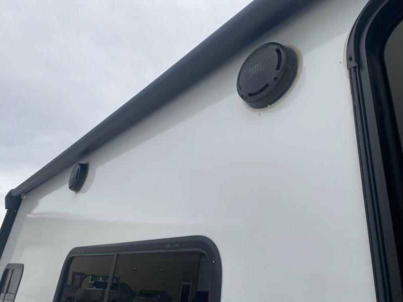 If you've been wanting to upgrade from a tent or pop-up camper to a travel trailer, the time is now with this unit! You will love the rear corner kitchen with a large sink and counter space to prep meals, and the full bath is in the other rear corner for convenience. The large slide out provides more space to let the dog stretch out on the floor, and you'll find the tri-fold sofa and kitchen appliances here as well. When your meal is done, you can dine at the Do-More dinette table, or take your plate outdoors to sit under the 19' power awning with LED Lights. The best features of this model might just be the front private bedroom that includes a walk-around queen bed, plus dual nightstands and dual wardrobes to keep your stuff off the floor!
