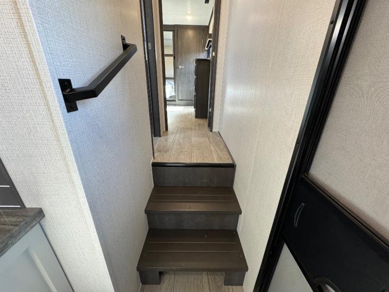 Spend more time having fun and less time worrying about your RV with the Keystone Cougar fifth wheel! These units have all that you will need for excellent vacations. The interior comes with 5/8" one-piece DynaSpan® flooring, tall slide outs for added comfort and head room, night roller shades throughout, and residential, raised-panel hardwood cabinet doors and drawers. You will also enjoy decorative crown molding, a 5,500 BTU electric fireplace with thermostat control and remote, and a Max Air exhaust fan with rain sensor. The exterior is also fully outfitted with a convenience center, friction-hinge entry door, electric four-point auto leveling system, and Lippert SolidStep® on the main entry. There is a full pass-through storage with slam-latch baggage doors, an industry-best 80-gallon fresh tank capacity, a 2" accessory hitch with 300-LB storage capacity, and an outside shower.
