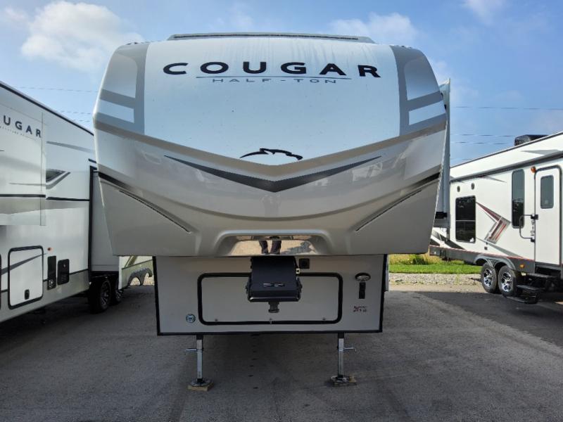 Spend your weekends in comfort with this Cougar Half-Ton fifth wheel! A full bathroom with a linen closet and shower with seat will provide convenience no matter where you've chosen to camp. You'll also be grateful to find a full kitchen with a 21" Furrion range with Piezo ignition and microwave so that you can get dinner ready in no time at all, and the private bedroom up front is where you will want to be at the end of a long day. You can also add an optional fireplace to this model to create a cozy atmosphere.