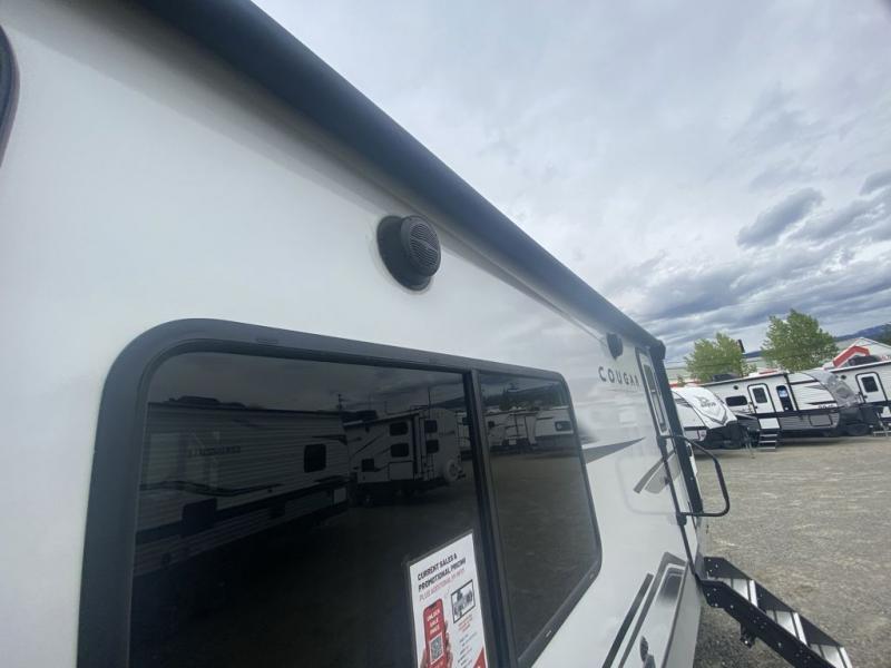The Keystone Cougar Half-Ton fifth wheel and travel trailers are known as one of America's favorites for a reason! Some of those reasons are the exclusive features that come from Keystone, like the Winegard Air 360+ omni-directional rooftop antenna, the in-floor heating ducts, and the Hyper Deck flooring. The Cougar Half-Ton has a Climate Guard protection package to keep you safe during inclement weather, along with two roof attic vents, PEX plumbing and more. Use the 21" Furrion range with Piezo ignition to create all of those familiar meals from home, and take charge of how you camp with the SolarFlex Protect that comes standard, or upgrade to a larger package or lithium batteries for even more off-grid capabilities.