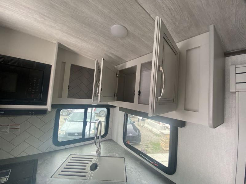 Get to your favorite places with this accommodating and stylish Cougar Half-Ton travel trailer! The single slide holds the 68" tri-fold sleeper sofa so you can have enough room to spread out and relax at night, and if you want a little snack while you play some games, you can heat up some popcorn in the microwave. After the night has ended, nothing will feel better than snuggling into the king-size bed up front in the master suite.