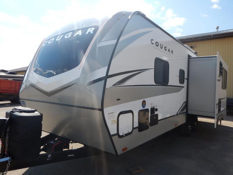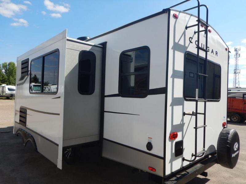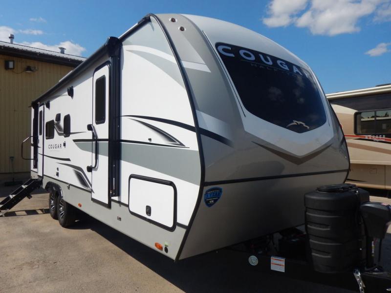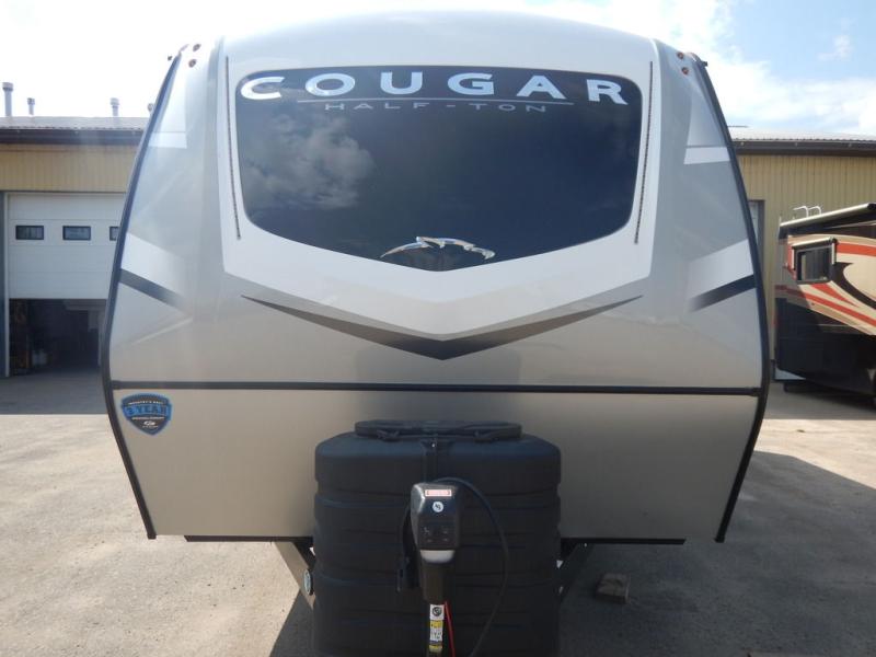 The Keystone Cougar Half-Ton fifth wheel and travel trailers are known as one of America's favorites for a reason! Some of those reasons are the exclusive features that come from Keystone, like the Winegard Air 360+ omni-directional rooftop antenna, the in-floor heating ducts, and the Hyper Deck flooring. The Cougar Half-Ton has a Climate Guard protection package to keep you safe during inclement weather, along with two roof attic vents, PEX plumbing and more. Use the 21" Furrion range with Piezo ignition to create all of those familiar meals from home, and enjoy endless hot showers with the Girard tankless on-demand water heater!
