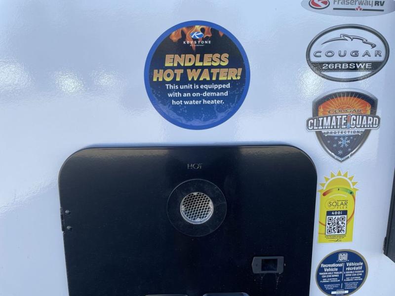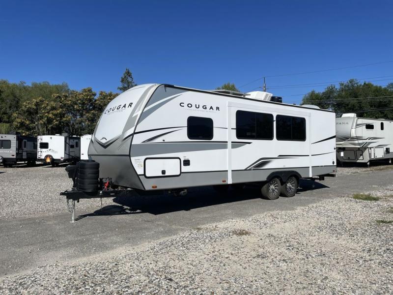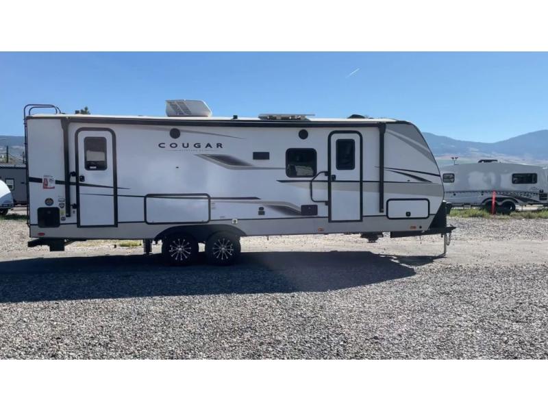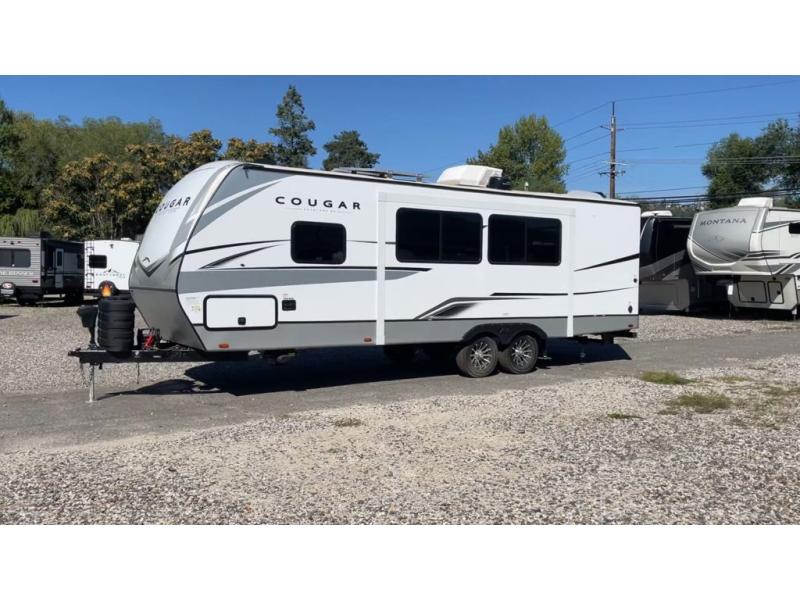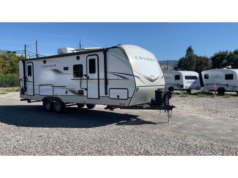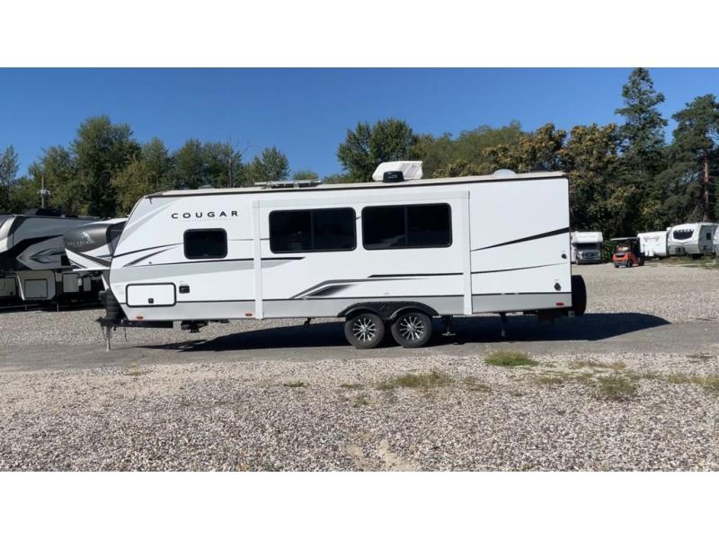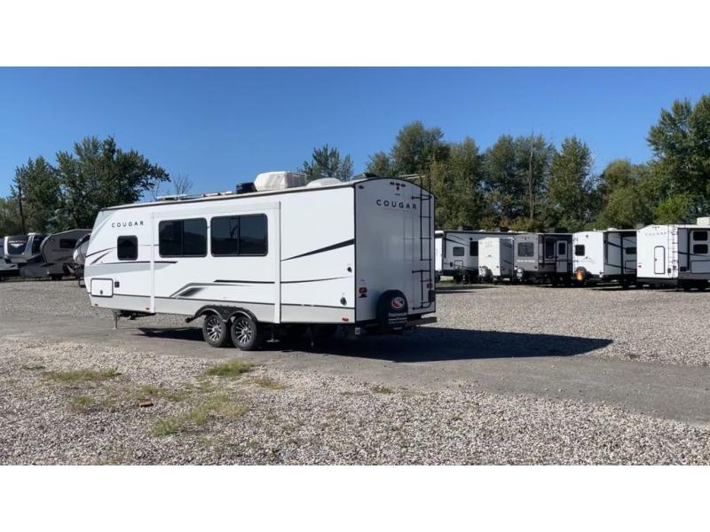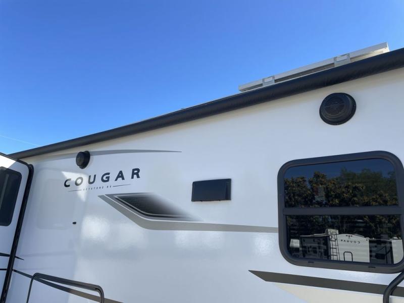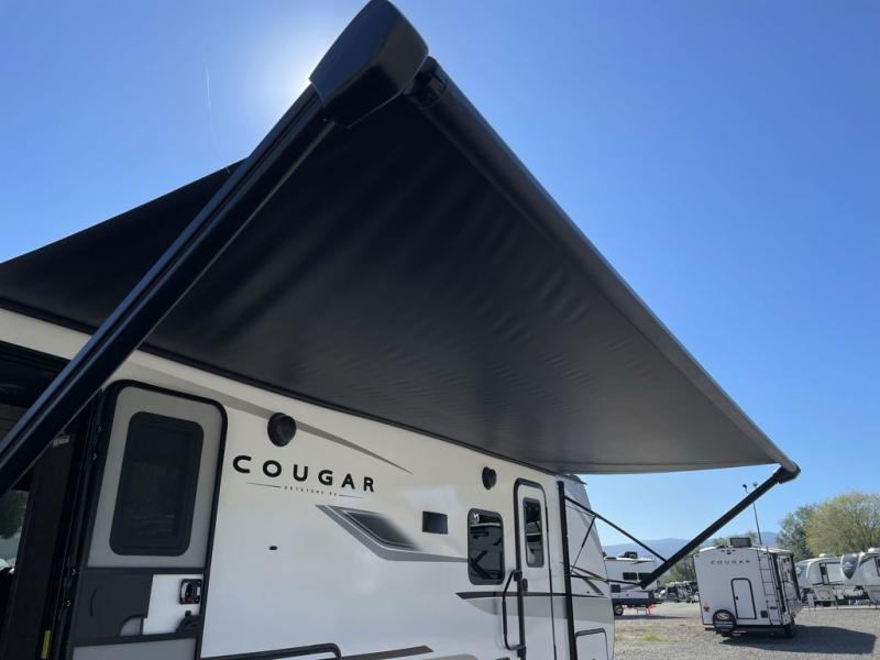 The Keystone Cougar Half-Ton fifth wheel and travel trailers are known as one of America's favorites for a reason! Some of those reasons are the exclusive features that come from Keystone, like the Winegard Air 360+ omni-directional rooftop antenna, the in-floor heating ducts, and the Hyper Deck flooring. The Cougar Half-Ton has a Climate Guard protection package to keep you safe during inclement weather, along with two roof attic vents, PEX plumbing and more. Use the 21" Furrion range with Piezo ignition to create all of those familiar meals from home, and enjoy endless hot showers with the Girard tankless on-demand water heater!