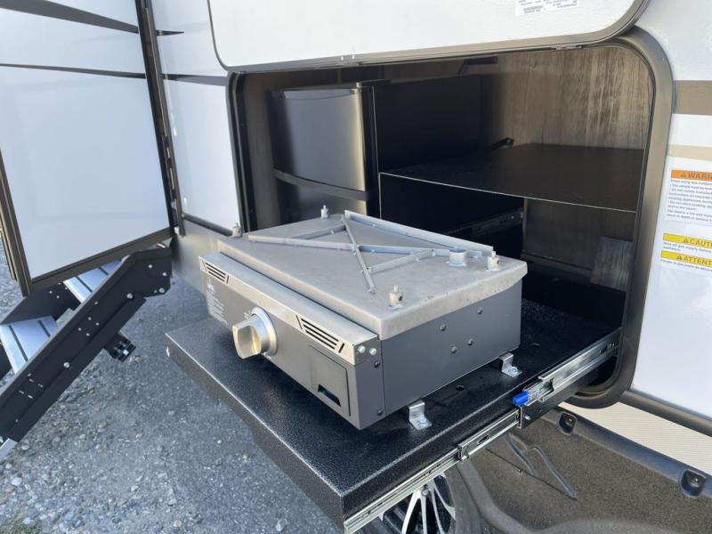 If you could cook outside or inside, which would it be? With this Cougar Half-Ton travel trailer, you get to decide that each time you make a meal. The outdoor grill and mini refrigerator are a great convenience while you play outside, and the interior kitchen pantry is located right next to the main entry door for quick access. You also have a second entry door that is located in the master bedroom as an added convenience. The main living area offers you plenty of seating and dining space with its 68" tri-fold sleeper sofa and booth dinette. You will surely enjoy sleeping on your own king bed at night and closing the door for privacy when you have overnight guests.
