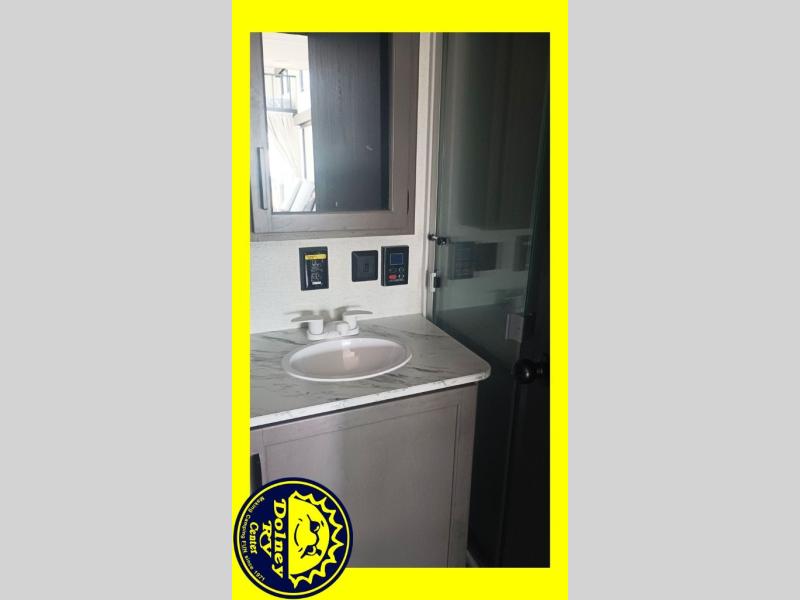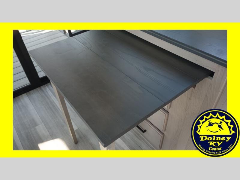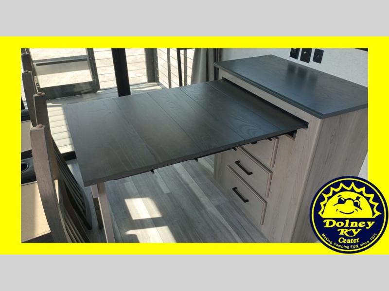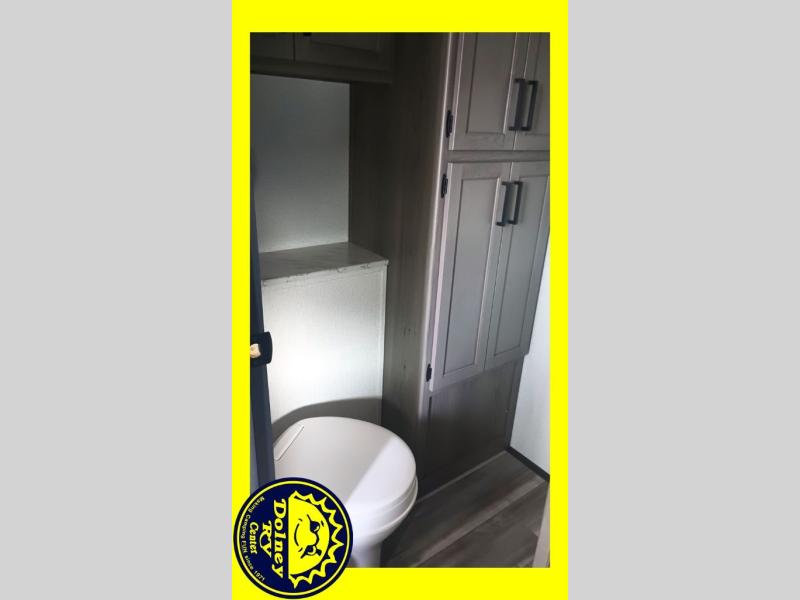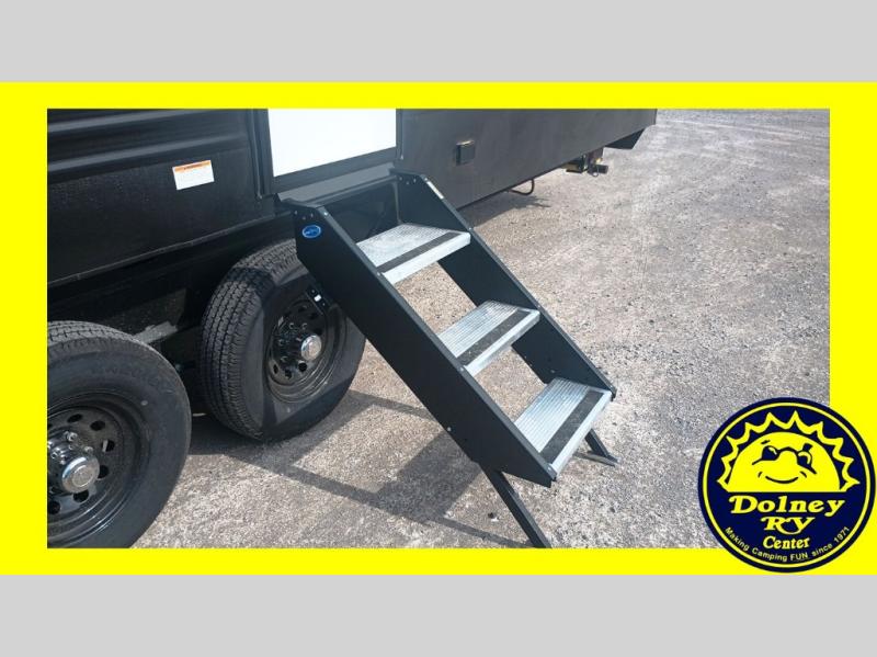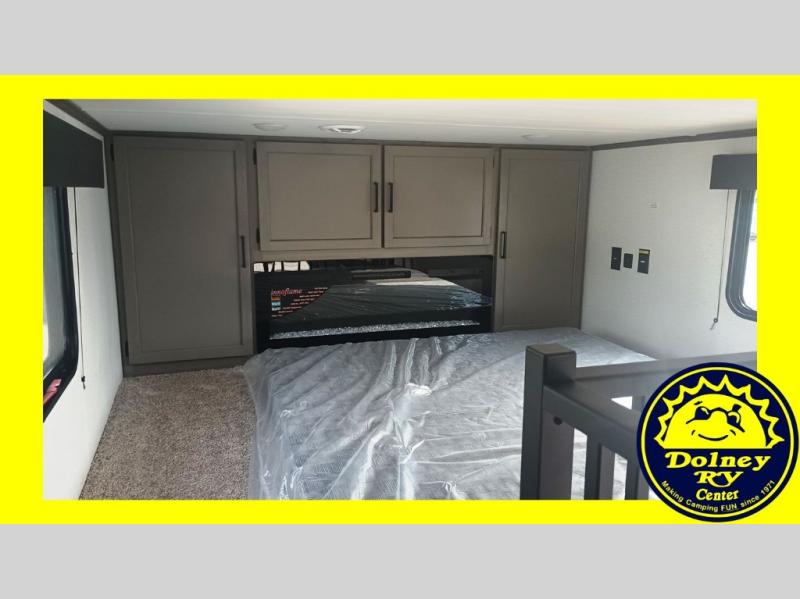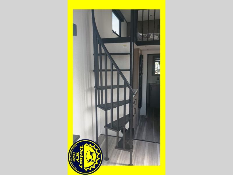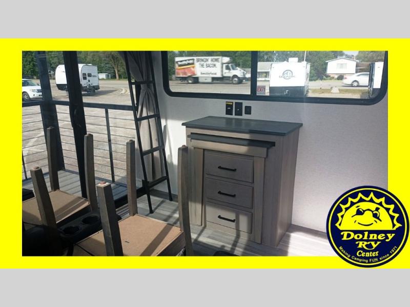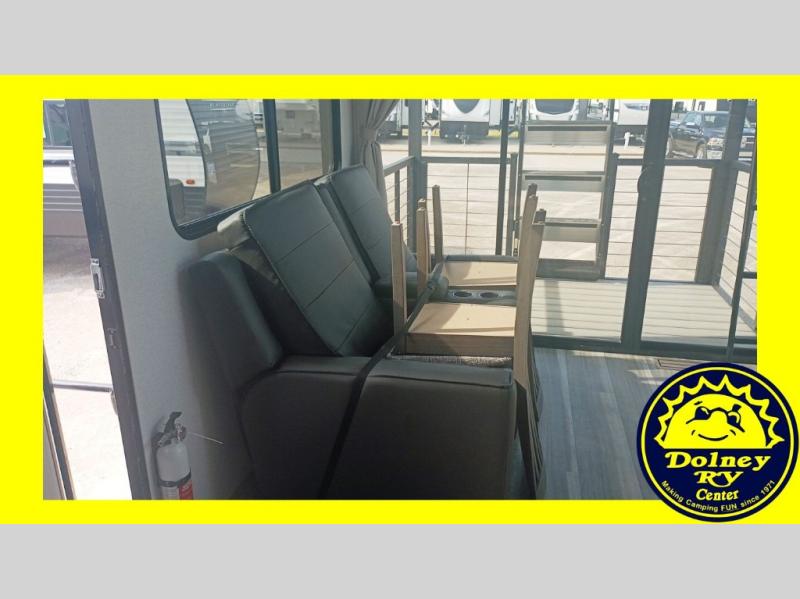 Any amount of time in this travel trailer will be time well spent! The rear entry door leads to the covered porch with a loft area above and queen-size bed. The patio door leads into the main living area where you can enjoy the sofa or dual lounge chairs with a pull-out table. Once you head to the front of this unit, you'll find the full kitchen with a three burner gas cooktop and 17" oven to cook meals on each day. There is also a pantry and 10 cu. ft. 12V refrigerator for food storage. The front full bath includes a shower with a seat, a toilet, sink, and a linen closet to keep clean towels close by. There is even a second loft above the kitchen and bath where you'll find a second queen-size bed and storage space for your things; how convenient!