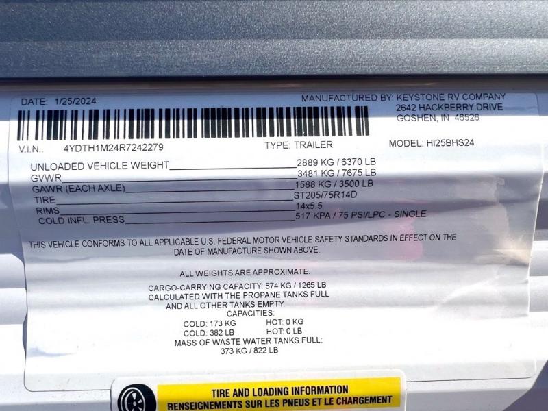 **NEW 2024 SPECIAL**Keystone Hideout travel trailer 25BHS highlights: