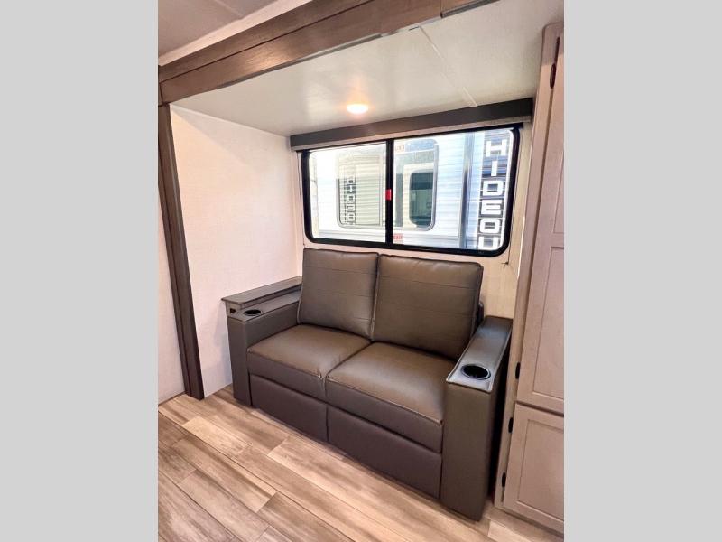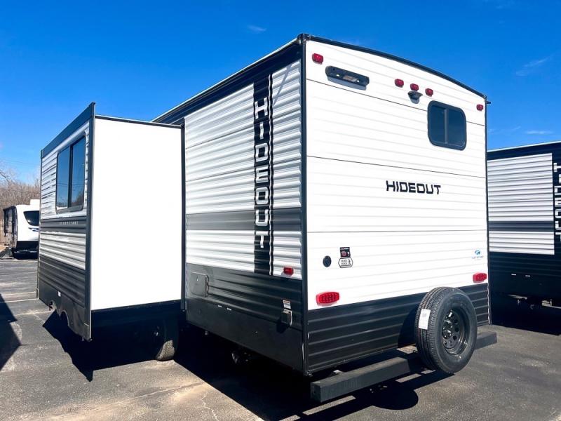 The Keystone Hideout travel trailers will be just what the doctor ordered for a stress-free holiday at your favorite campsite! There are a few exclusive features that you'll only find on a Keystone product, like the in-floor heating ducts, and the Tru-fit™ slide construction. Each model has a power awning for some shade in the afternoon, and the tinted safety glass windows will prevent the harmful UV rays from getting inside. You'll also have blackout night shades that you can close when you want privacy and one-piece pressed countertops that are not only sleek looking, but easy to keep clean.