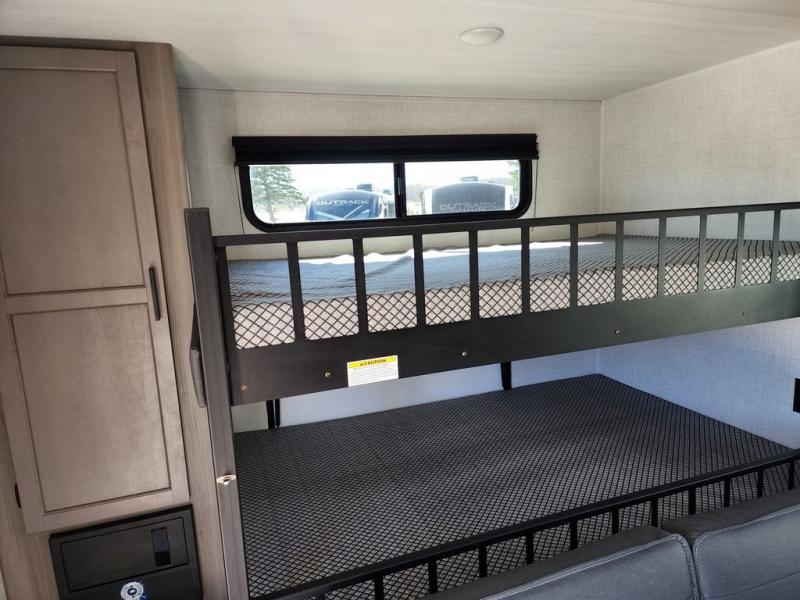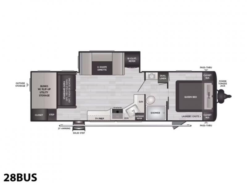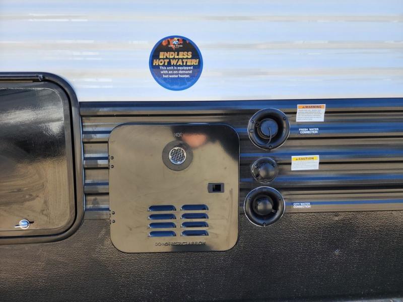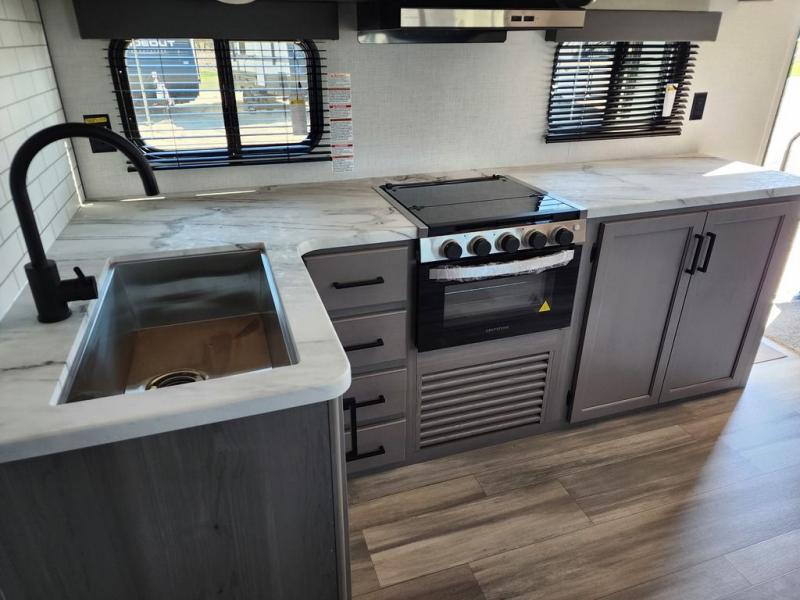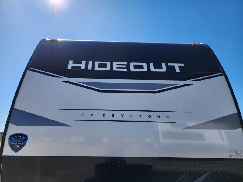 Are you looking for a travel trailer with more space, more amenities, and more sleeping space? Look no further than this Hideout! There are convenient dual entry doors for a smooth flow of traffic, a walk-through bath that will create a front master bedroom, plus bunks in the back with flip-up utility storage for your gear. And you can easily access this gear from outside using the storage door under the bunks! Everyone can meet in the main living area around the U-shaped dinette or on the sofa that be switched out for an optional tri-fold sofa or optional theater seating. And since there is TV prep you can make this space feel even more like home! The chef of your group will have everything they need to prepare meals each day, including a three burner cooktop and plenty of counter space. Head outdoors after dinner to enjoy the 21' power awning and grab a cold drink from the outdoor refrigerator!