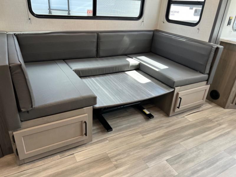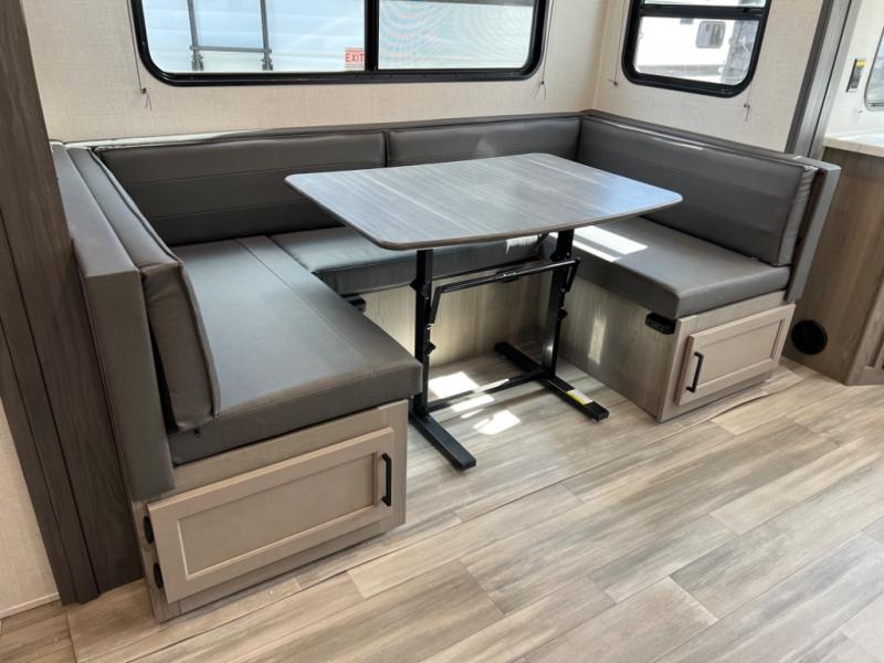 - U-shaped dinette for dining, game nights, and additional sleeping space
