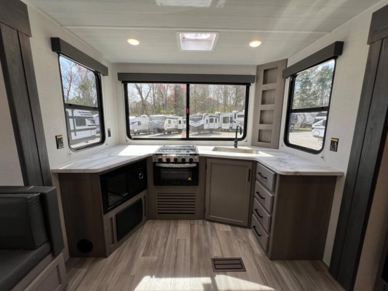 This spacious rear kitchen travel trailer is designed for campers who want comfort, storage, and an inviting living space for weekend trips or extended stays. Dual slides open up the main area for relaxing evenings, and the private front bedroom creates a quiet retreat. Ideal for couples or small families seeking a dependable and easy-to-enjoy RV.