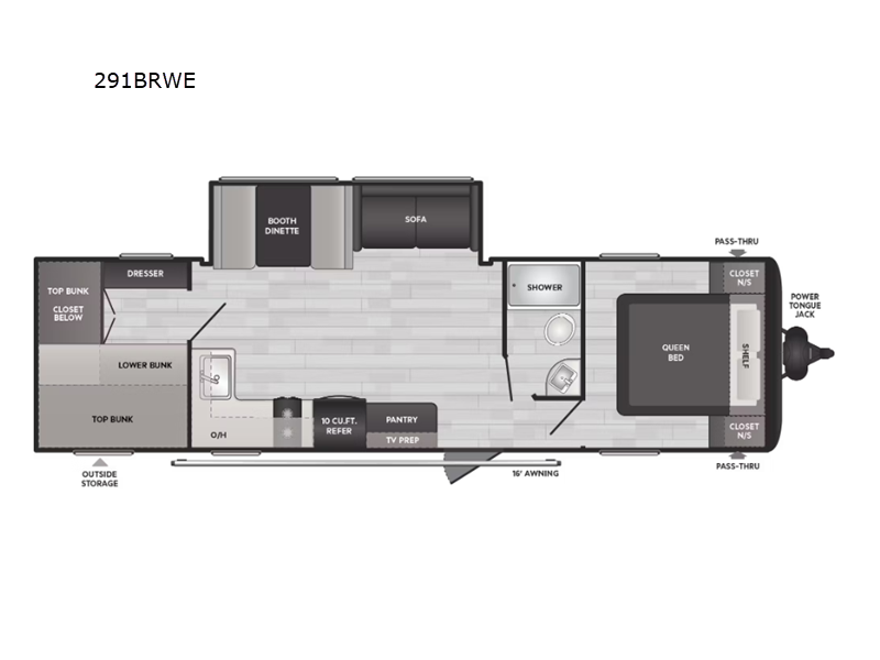 If you enjoy camping with extra friends and family, this travel trailer will be perfect for you! There is a rear bunkhouse with triple bunks, a dresser, plus a closet, making this room perfect for guests. Up front you'll find the private bedroom with a queen bed, dual nightstands and dual closets for your things, and the full bath is close by for convenience. The chef of your group will have a two burner cooktop to prepare meals, ample counter space, plus a pantry for dry goods and snacks. Your crew can play a game at the booth dinette or relax on the sofa while dinner is being made, or they can relax outdoors under the 16' power awning!