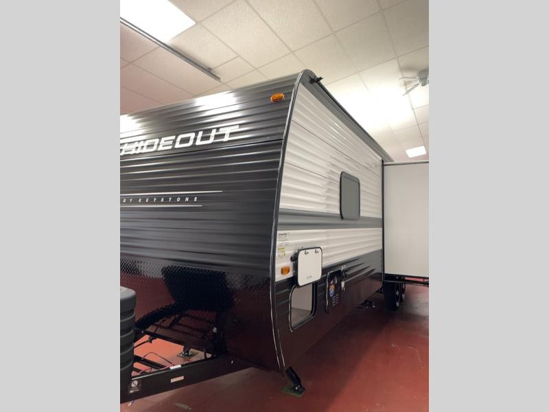 The Keystone Hideout travel trailers will be just what the doctor ordered for a stress-free holiday at your favorite campsite! There are a few exclusive features that you'll only find on a Keystone product, like the 4G LTE and Wi-Fi prep, the in-floor heating ducts, and the Tru-fit™ slide construction. Each model has a power awning for some shade in the afternoon, and the tinted safety glass windows will prevent the harmful UV rays from getting inside. You'll also have blackout night shades that you can close when you want privacy and one-piece pressed countertops that are not only sleek looking, but easy to keep clean.